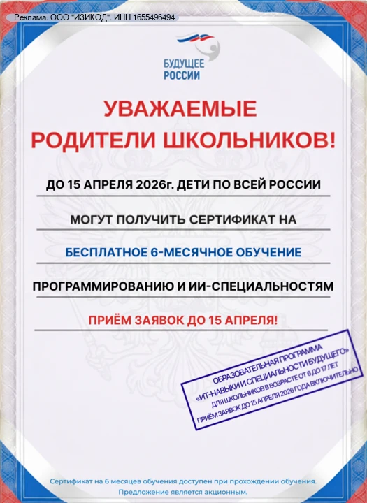 До 15 апреля каждый школьник (6-17 лет) может получить сертификат на 6 месяцев бесплатного обучения программированию.