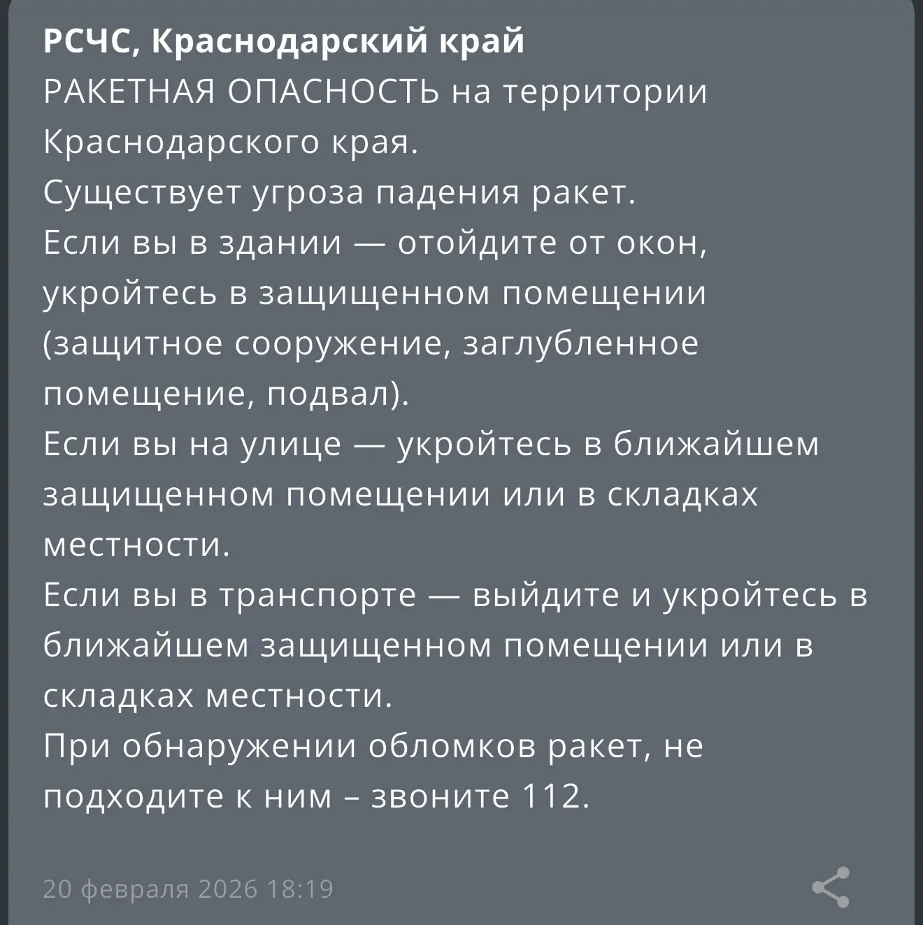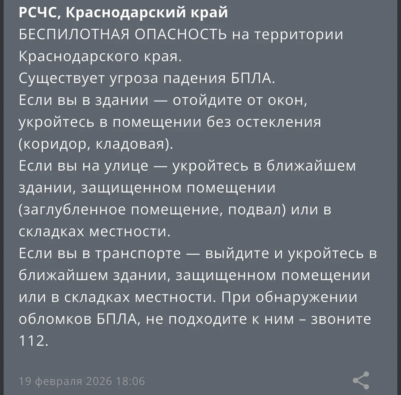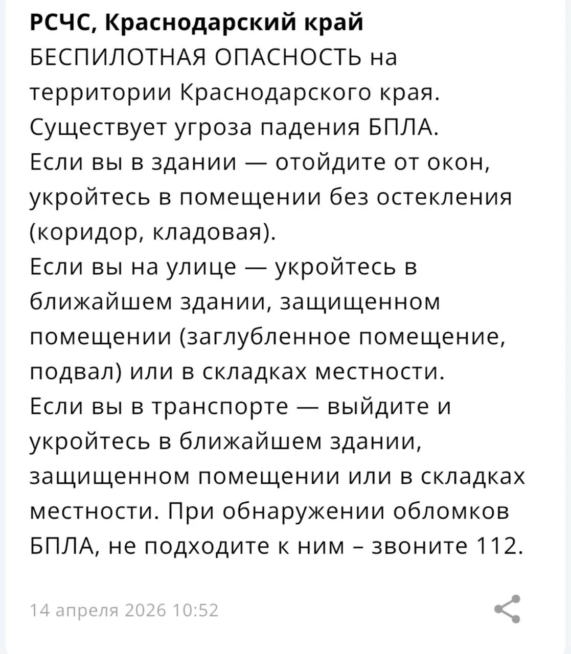 ❗️ На территории Краснодарского края объявлена «Беспилотная опасность».