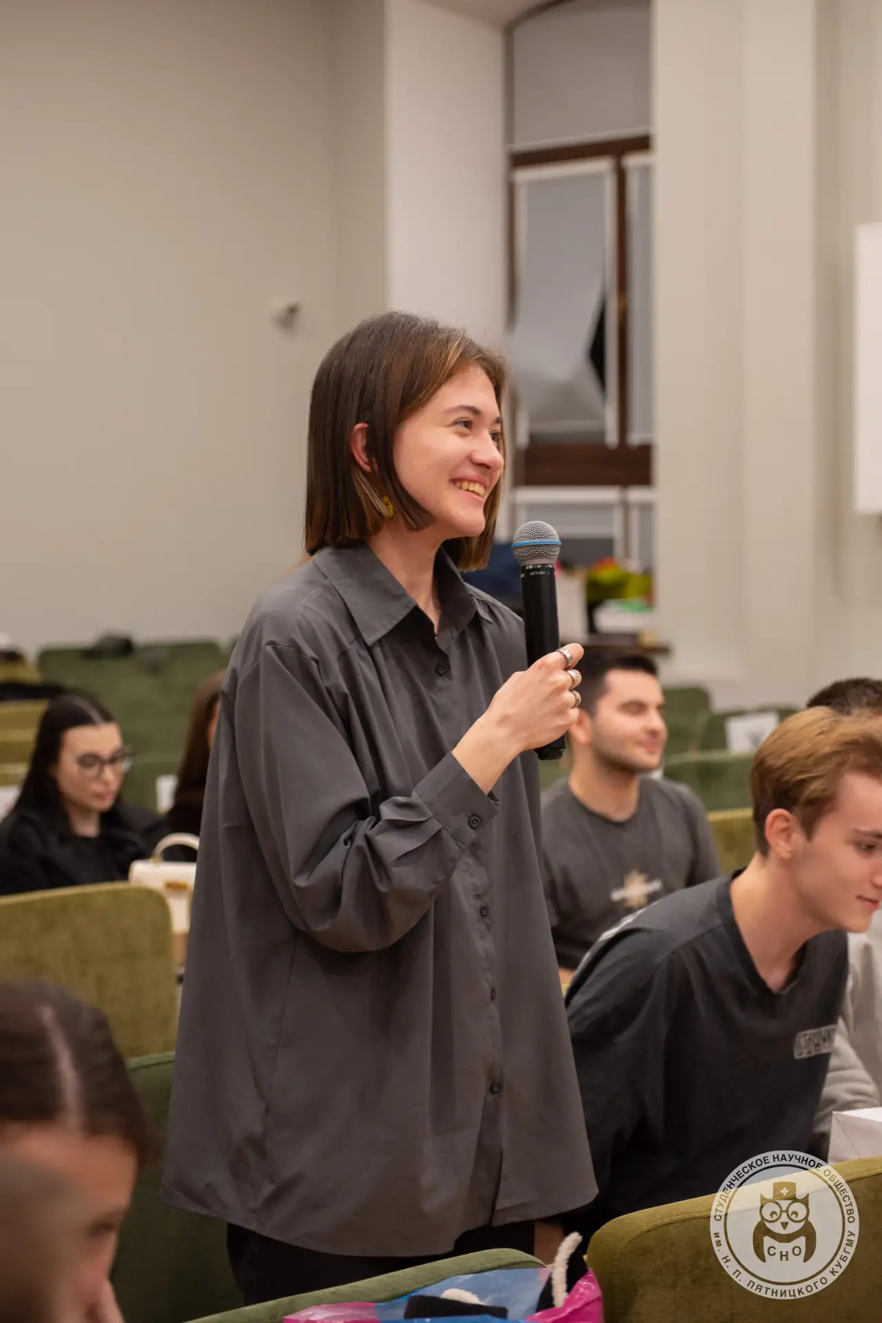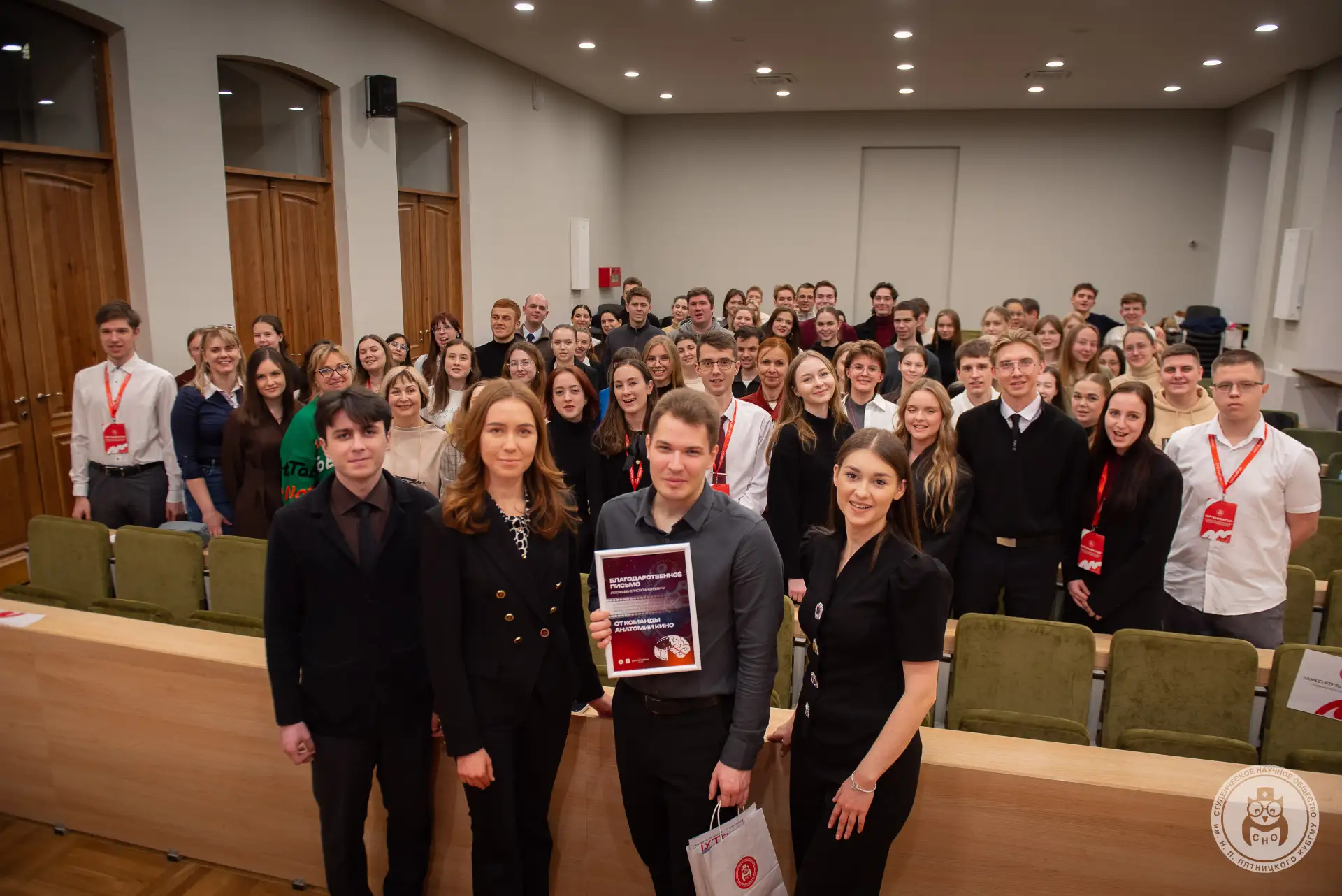❤️ В ходе встречи также прошла тематическая викторина: двое участников набрали одинаковое количество баллов, поэтому победителя определили открытым голосованием зрителей. Главный приз — блокнот, ручка, периодическое издание «Путь в науку» и фирменный значок СНО — достался обладателю лучшего результата.