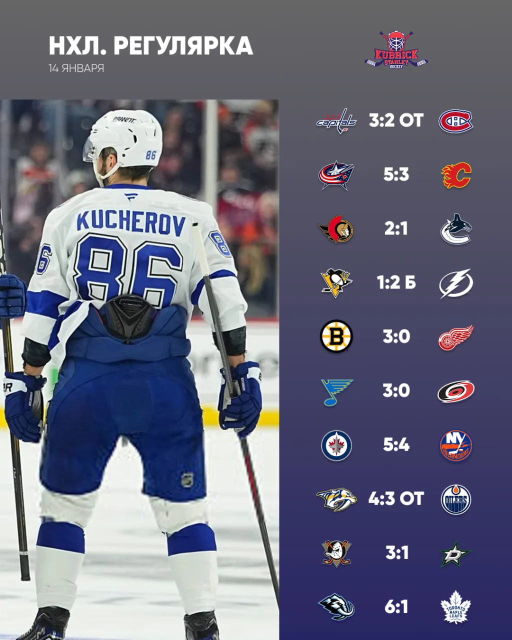 📊 Капризов выпал из топ-10 гонки бомбардиров НХЛ, Кучеров продолжает идти рядом с тройкой лидеров