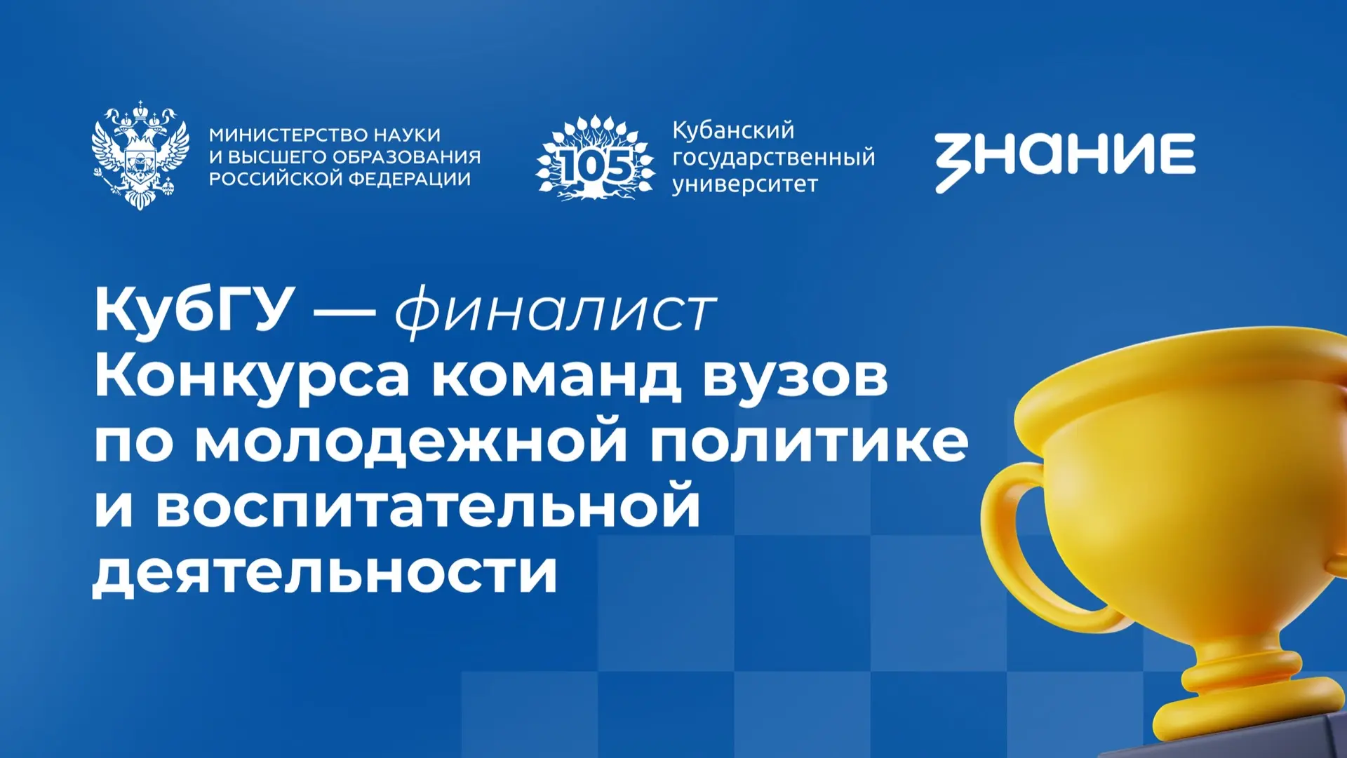 Конкурс команд вузов по молодежной политике и воспитательной деятельности организован Российским обществом «Знание» совместно с Минобрнауки России при поддержке Росмолодёжи.
