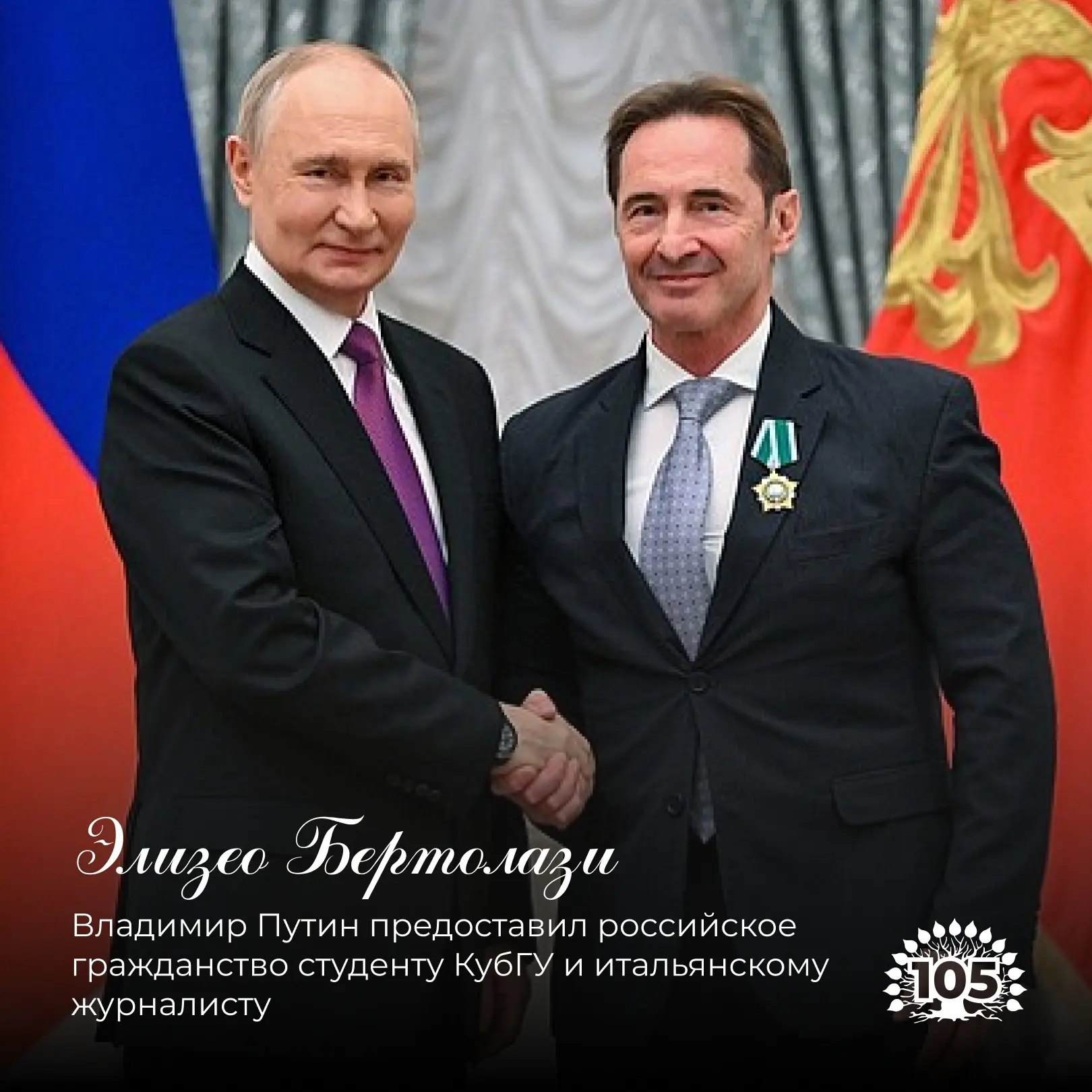 Магистрант факультета журналистики КубГУ, итальянский журналист Элизео Бертолази, получил российское гражданство.