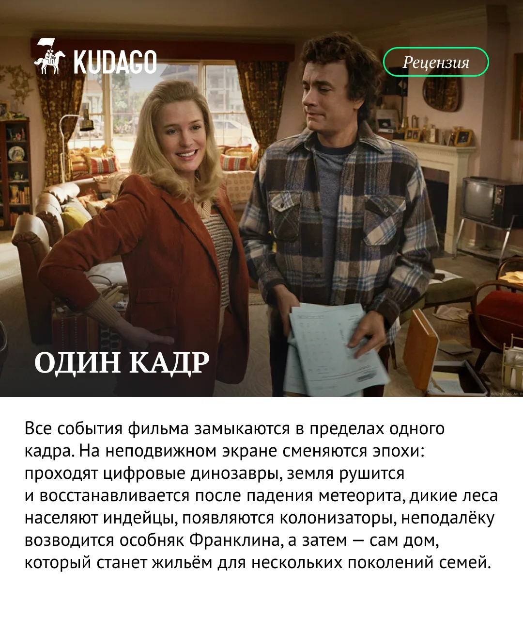 До российского проката всё-таки добрался фильм Роберта Земекиса с омоложенным Томом Хэнксом. Как режиссёр сводит века американской истории к пределам одного кадра и воспевает семейные ценности, читайте в нашей рецензии.