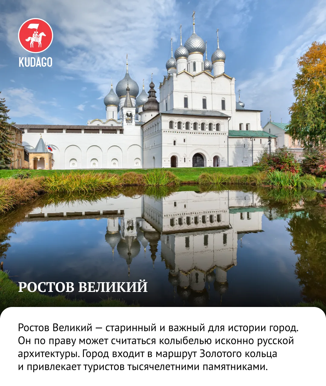 Любуемся фресками древних монастырей в Ростове Великом, изучаем истоки русского флота в Переславле-Залесском, погружаемся в атмосферу купеческой Костромы и открываем неожиданные грани текстильной столицы в Иваново. Каждый город раскрывает свою уникальную страницу истории, сохраняя дух древней Руси. Редакция KudaGo исследовала каждый уголок этого легендарного маршрута, чтобы поделиться самыми яркими открытиями.