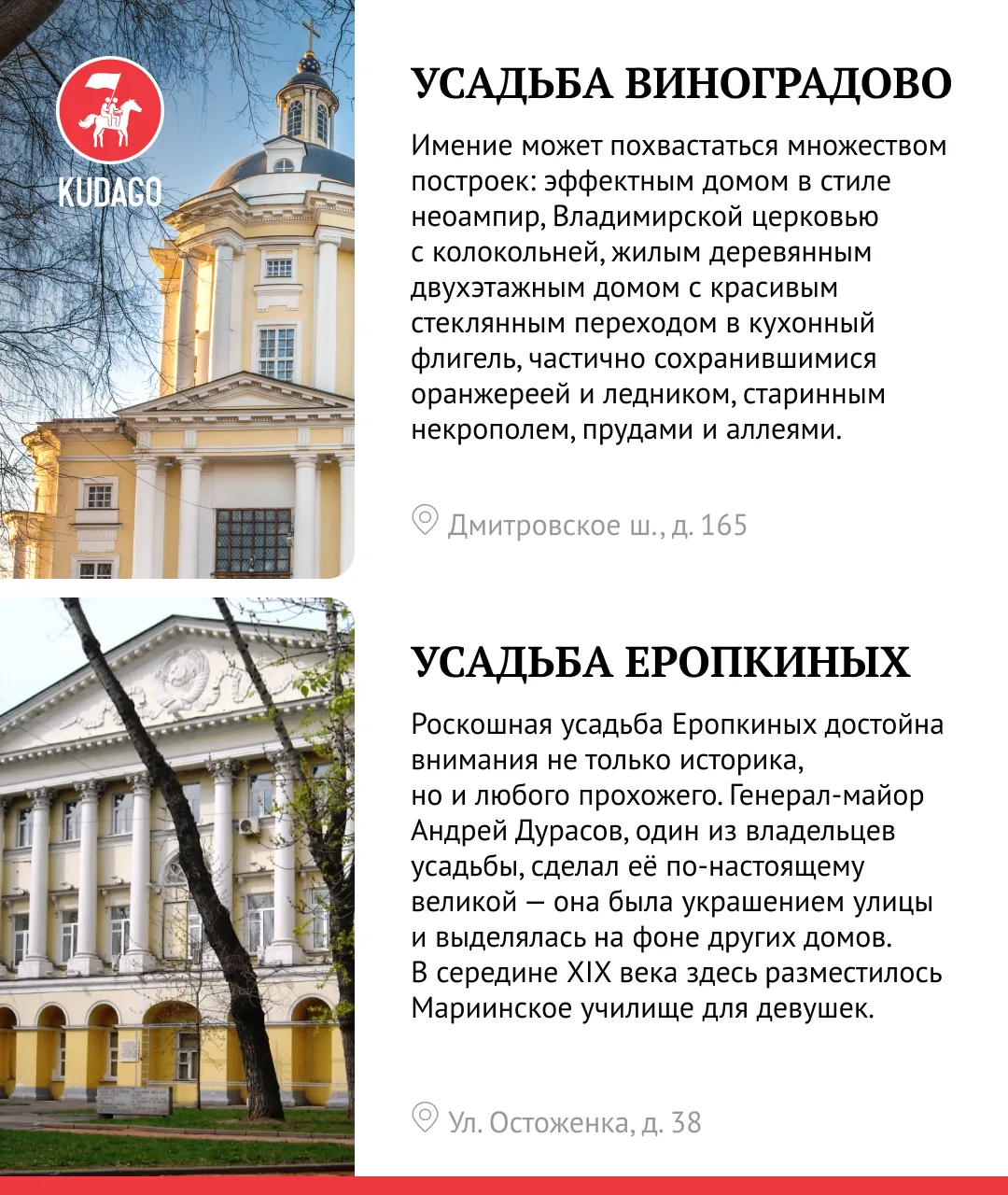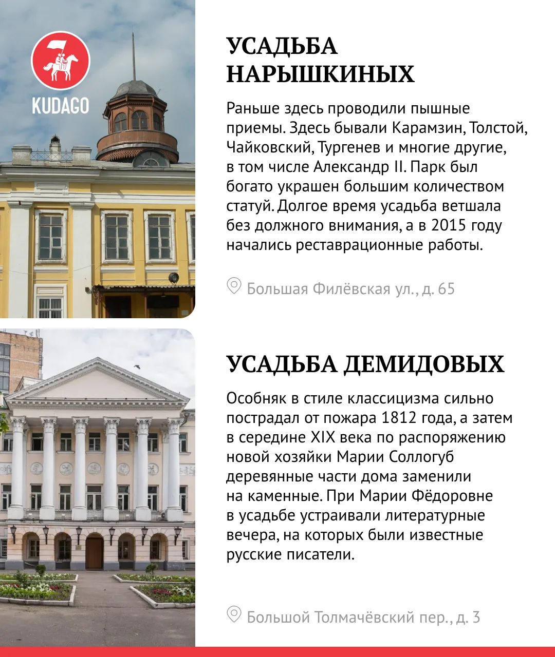 Иногда лучший план — сменить проспекты на старые особняки и усадебные аллеи. Мы собрали места, где удобно почувствовать атмосферу «дворянской» столицы и узнать пару новых фактов о её прошлых владельцах.