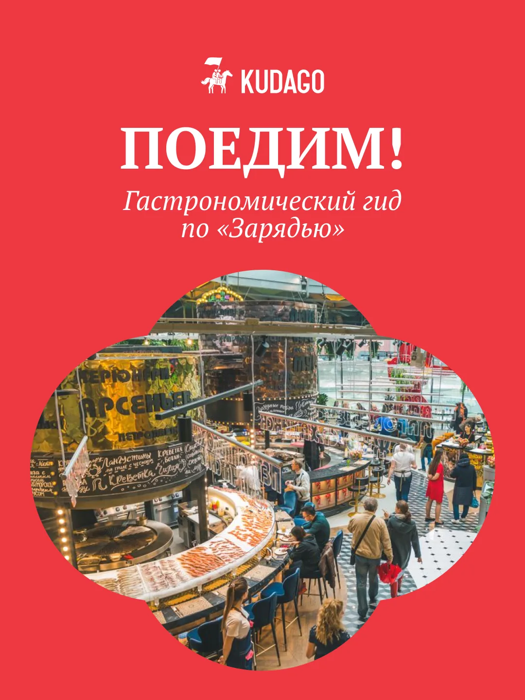 Еда в «Зарядье» — это огромный фудкорт, разделённый на тематические зоны. Каждая имеет своё название и привязана к определённому продукту либо способу его приготовления. Гастрономическим проектом в двух шагах от Кремля управляет известный ресторатор Александр Раппопорт.
