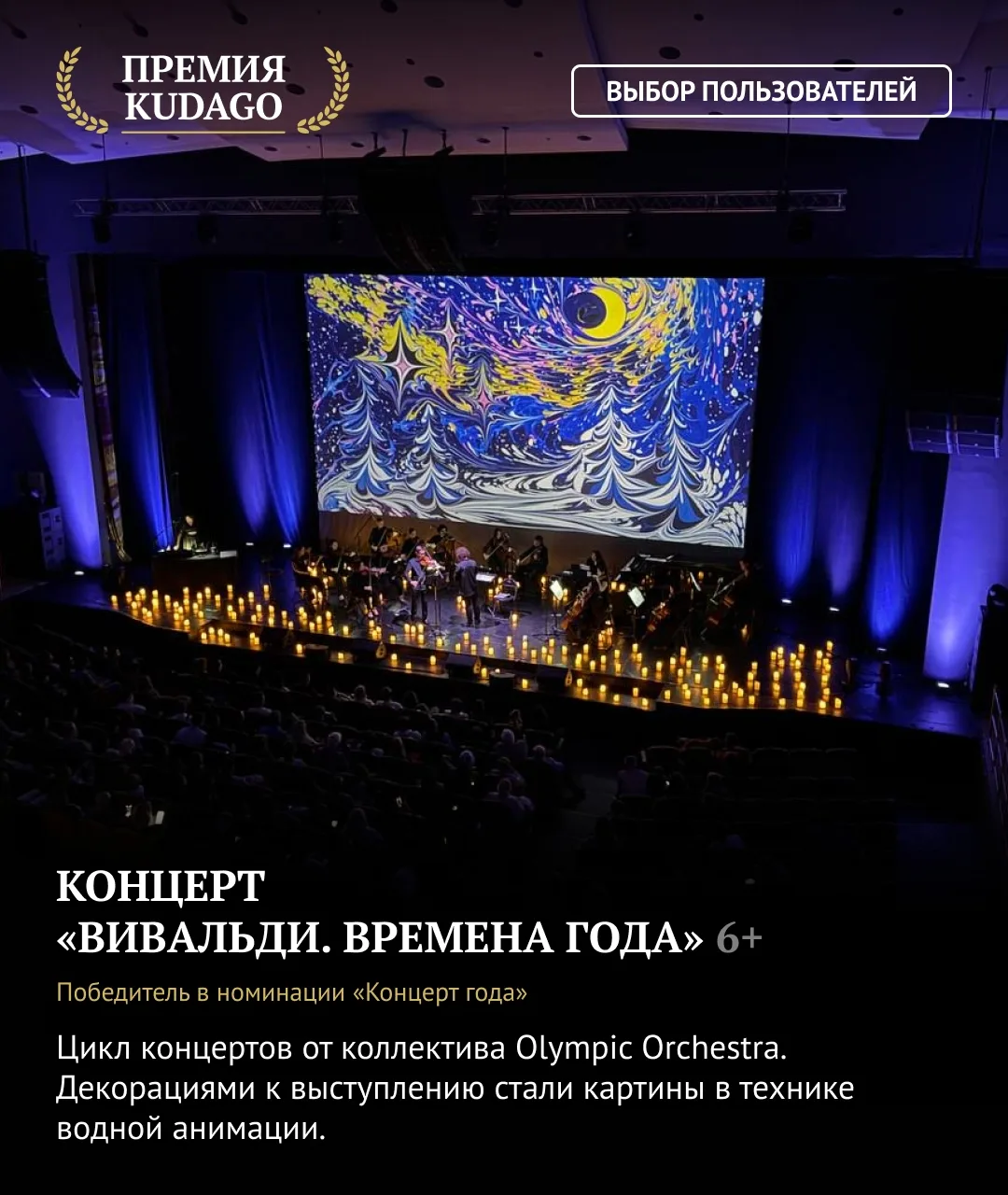 В номинации «Концерт года» победителем стала постановка «Вивальди. Времена года» в исполнении Olympic Orchestra.