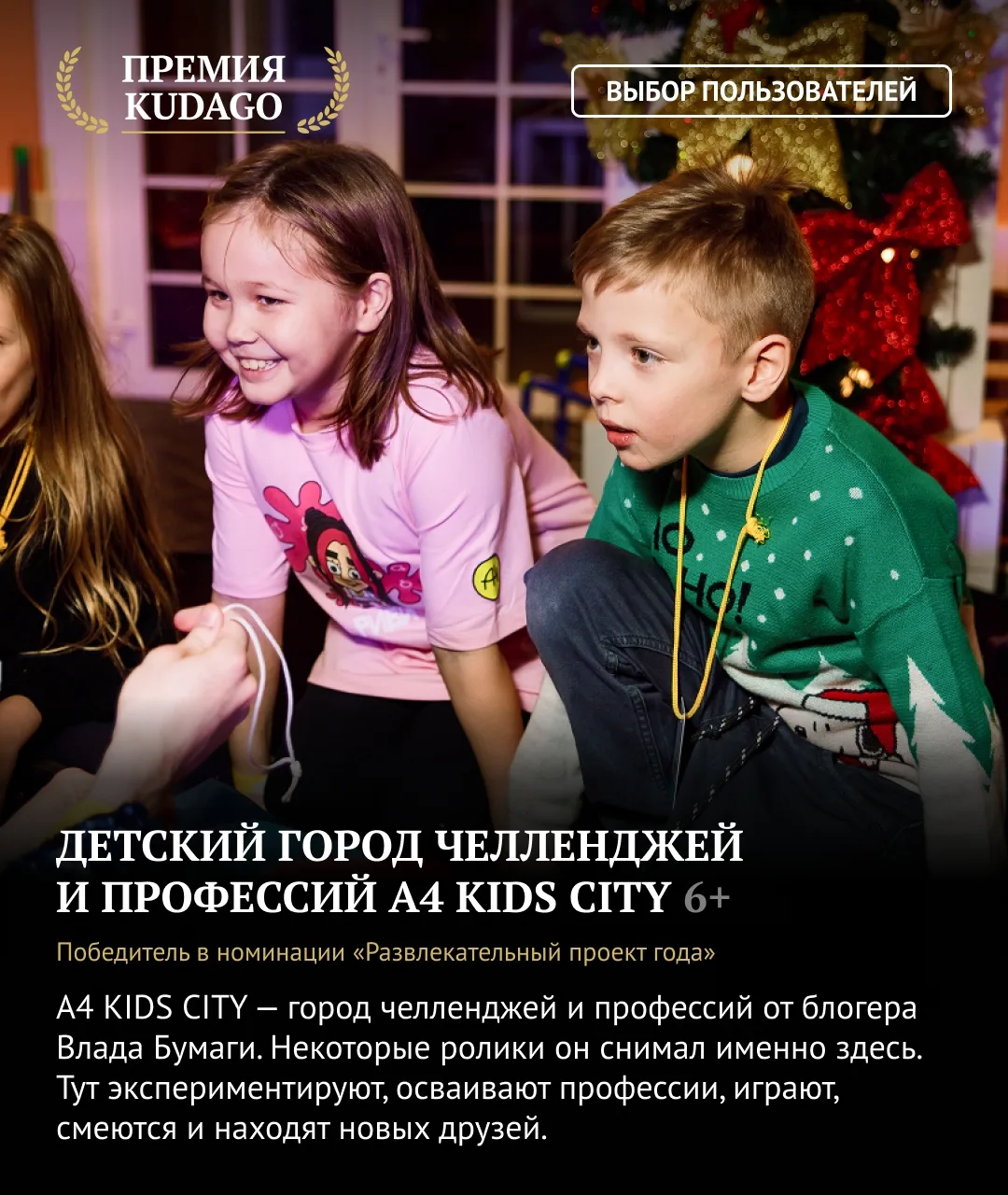 В номинации «Развлекательный проект года» победил проект «А4 KIDS CITY: детский город челленджей и профессий».