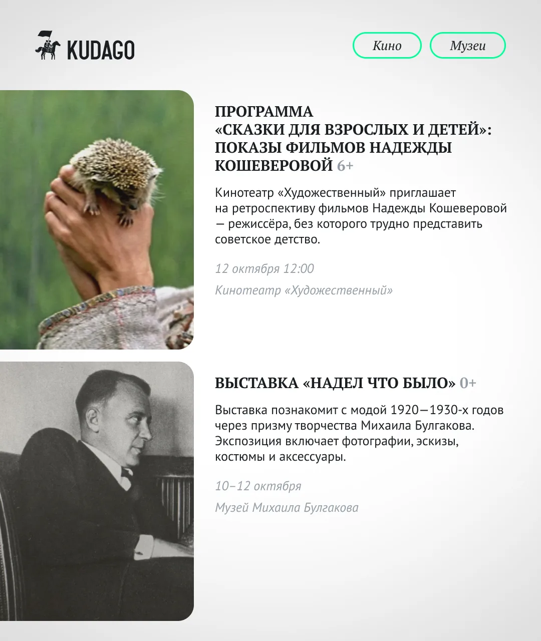 Листайте карточки и планируйте прогулку!