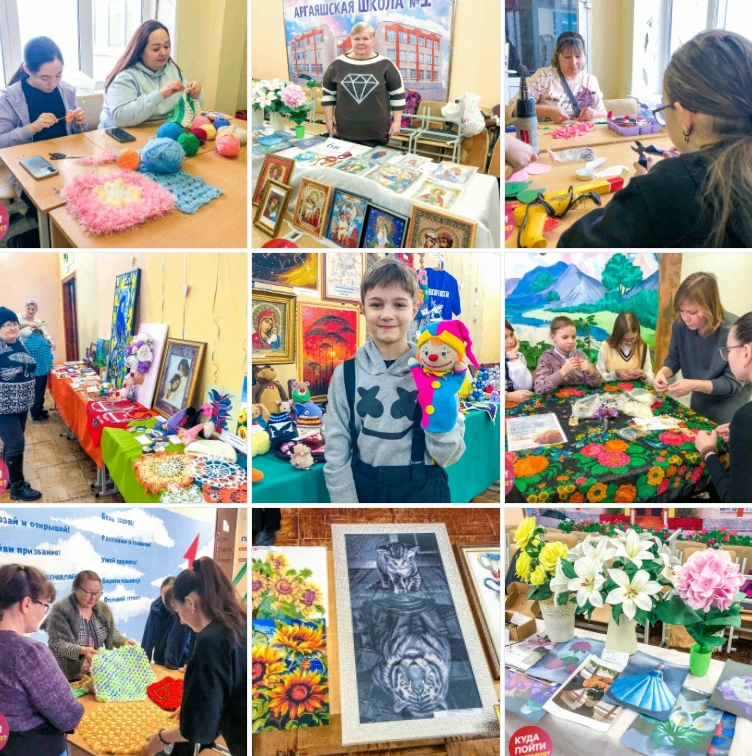 🎨🧵🧶 В Аргаяшской школе №1 прошла выставка декоративно-прикладного творчества. Свои работы представили педагоги и родители учащихся