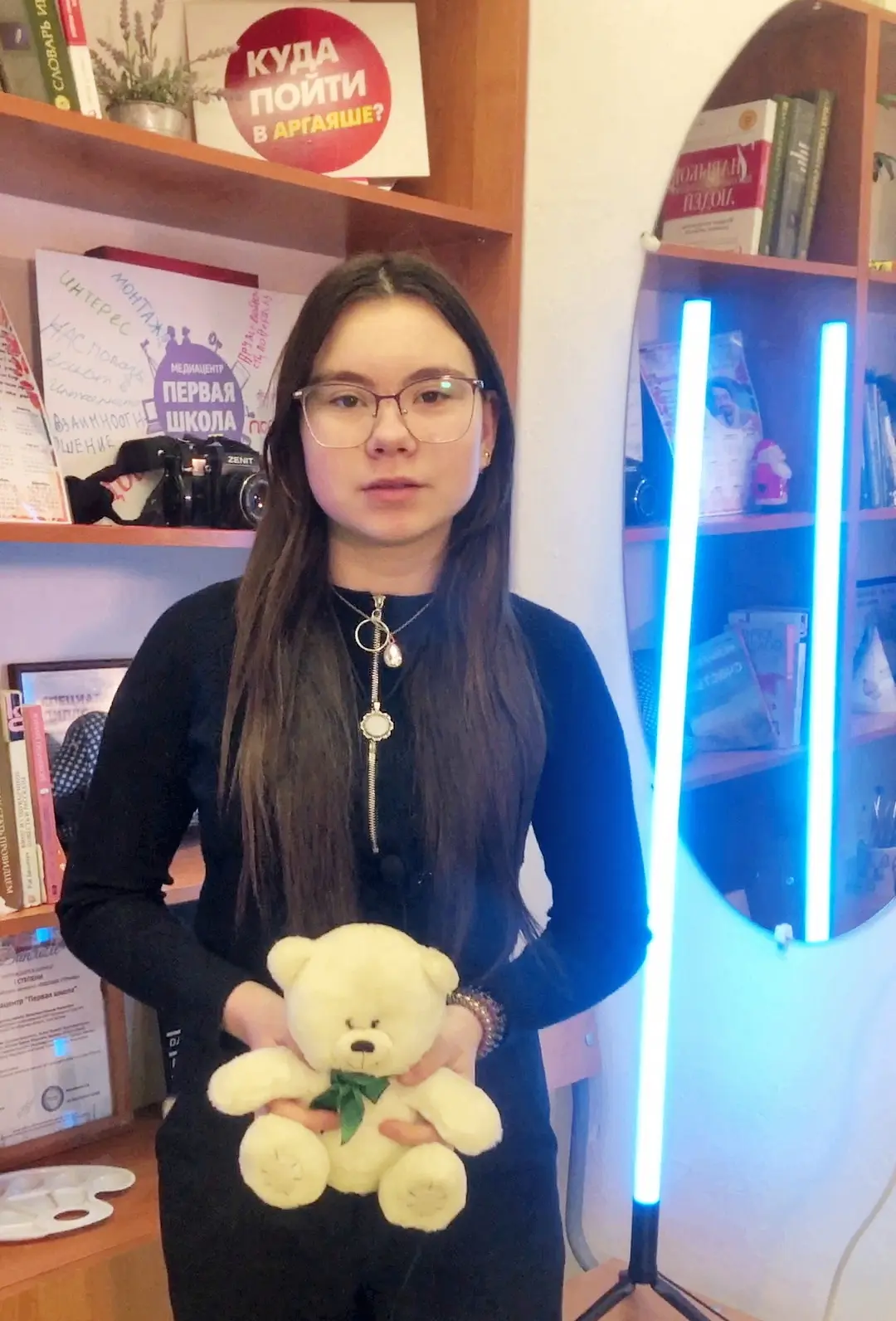 🎉 Сегодня, 21 ФЕВРАЛЯ день рождения отмечает Елена Бакеева - семиклассница Аргаяшской школы №1, ведущая, репортёр и оператор медиацентра «Первая школа». 🎤