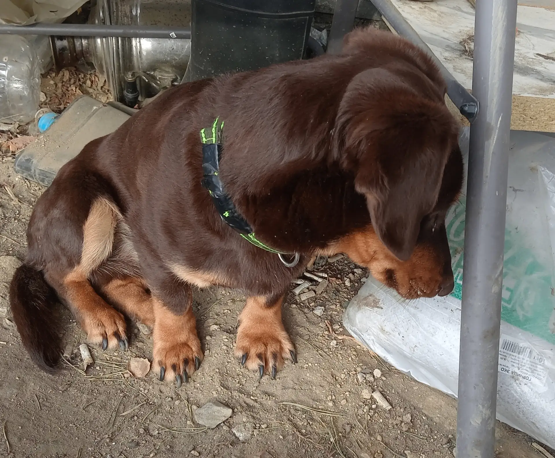 Вчера за нами увязался чей-то пёсик с ошейником. От нашего дома теперь не уходит. Видно, что домашний, не бродяга.
