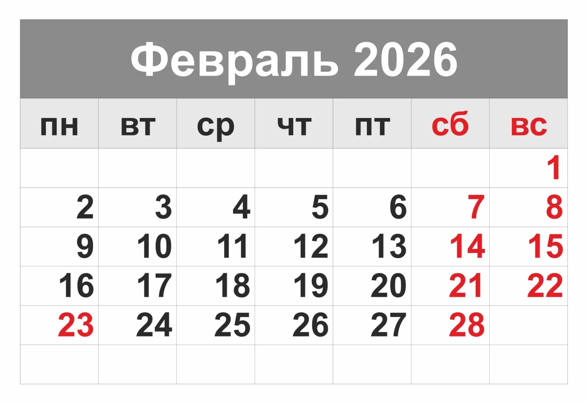 День защитника Отечества в 2026 году приходится на понедельник и является официальным выходным днём. То есть, отдыхать будем в субботу, воскресенье и понедельник (21-23 числа).