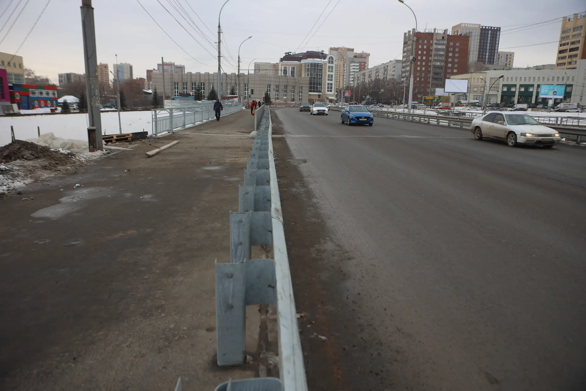 С 21 марта на мосту появятся железобетонные блоки, ограничивающие крайнюю правую полосу в направлении с левого на правый берег, и временные светофоры — они обеспечат работу реверсивного движения для удобства водителей.