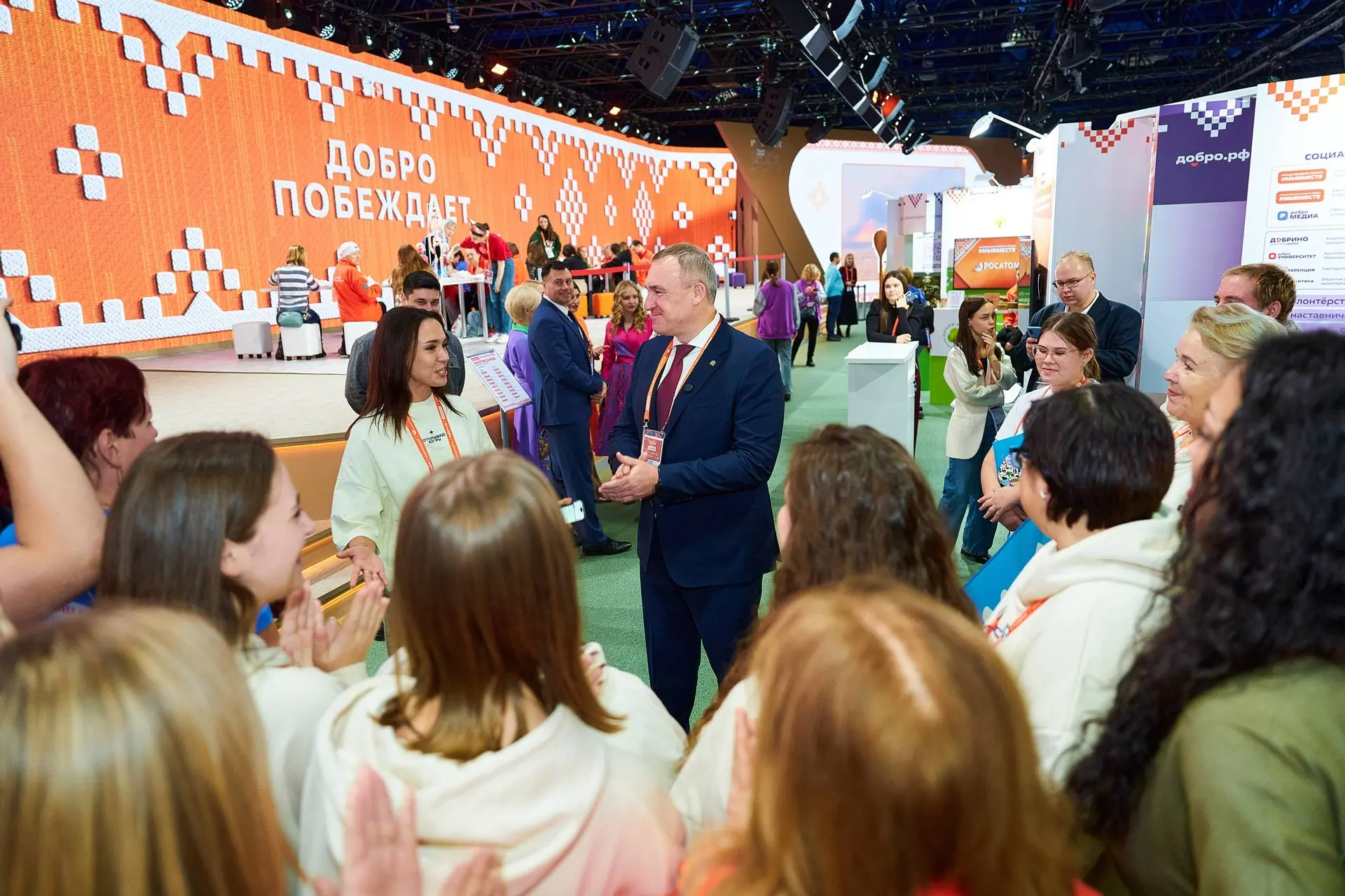 В День добровольца на Международном форуме гражданского участия #МЫВМЕСТЕ вместе с председателем Комитета Государственной Думы РФ по молодежной политике, председателем Совета Ассоциации Добро.рф Артемом Метелевым осмотрел выставку «Площадь добрых дел». Здесь представлены самые значимые проекты в сфере добровольчества – от помощи участникам специальной военной операции до экологических инициатив и социально значимых программ.