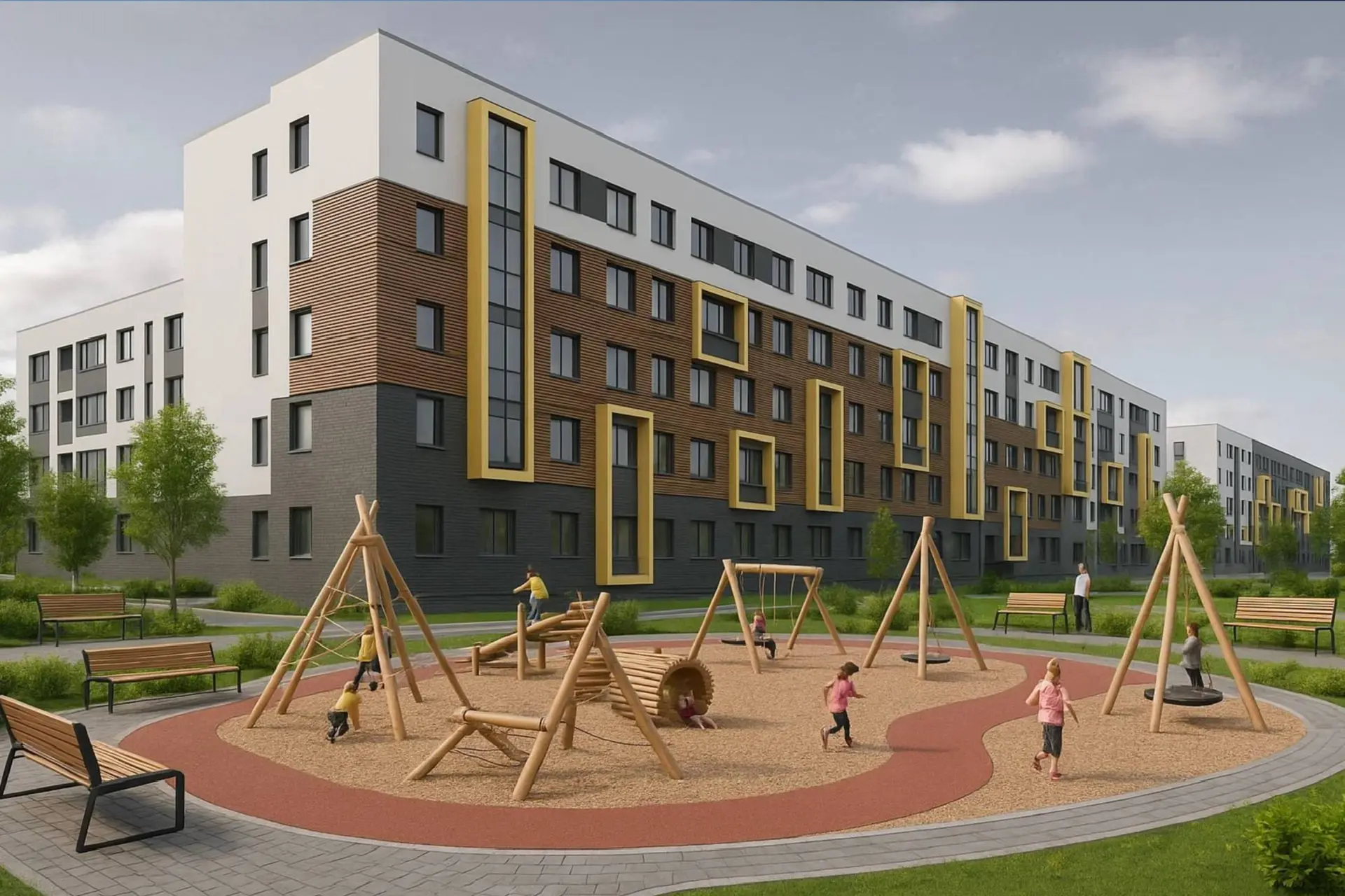 Проектом предусмотрено строительство двух многоквартирных домов, детской и спортивной площадки, зоны отдыха, парковки.