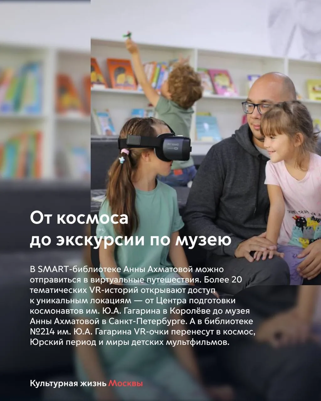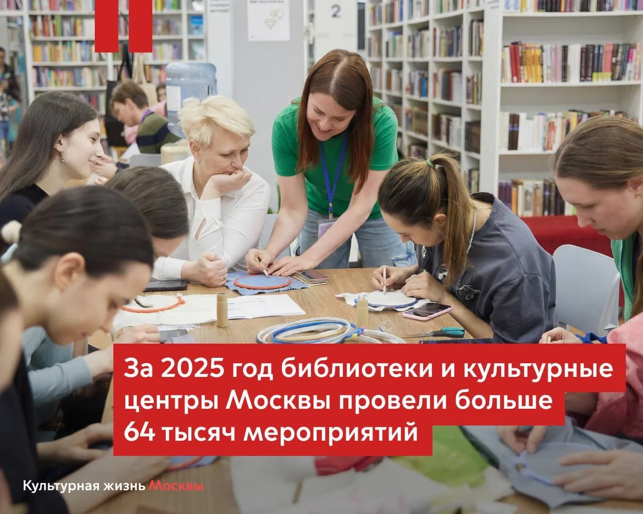 «За год библиотеки и культурные центры Москвы провели больше 64 тысяч мероприятий. Дети и взрослые знакомились с любимыми авторами, участвовали в мастер-классах, экскурсиях и фестивалях», — отметила заммэра Наталья Сергунина.
