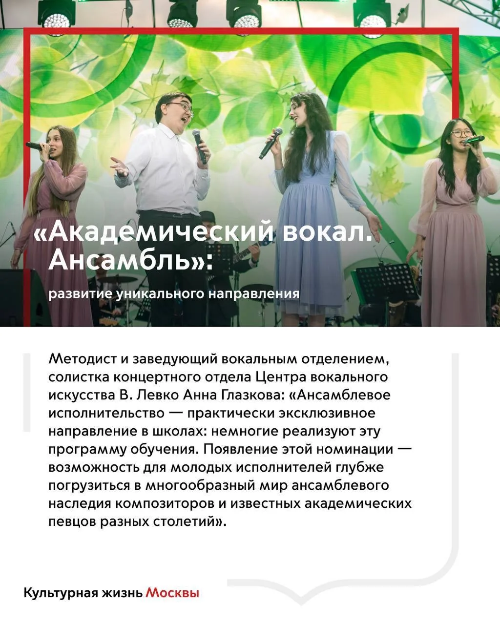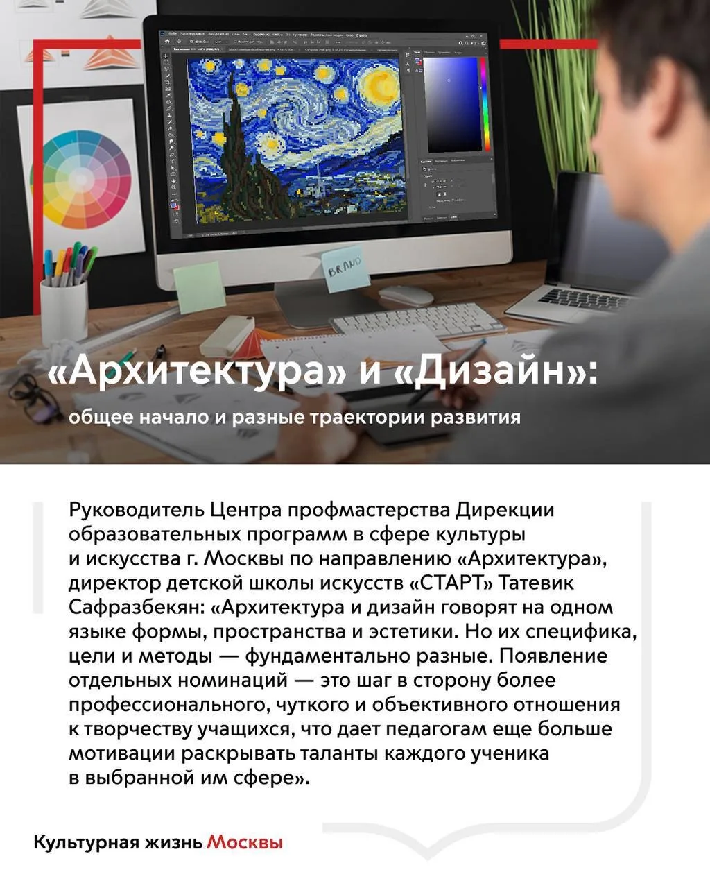 Руководители центров профессионального мастерства Дирекции образовательных программ в сфере культуры и искусства города Москвы в карточках рассказали о главных нововведениях — появлении ансамблевой категории и разделение номинаций дизайна и архитектуры.