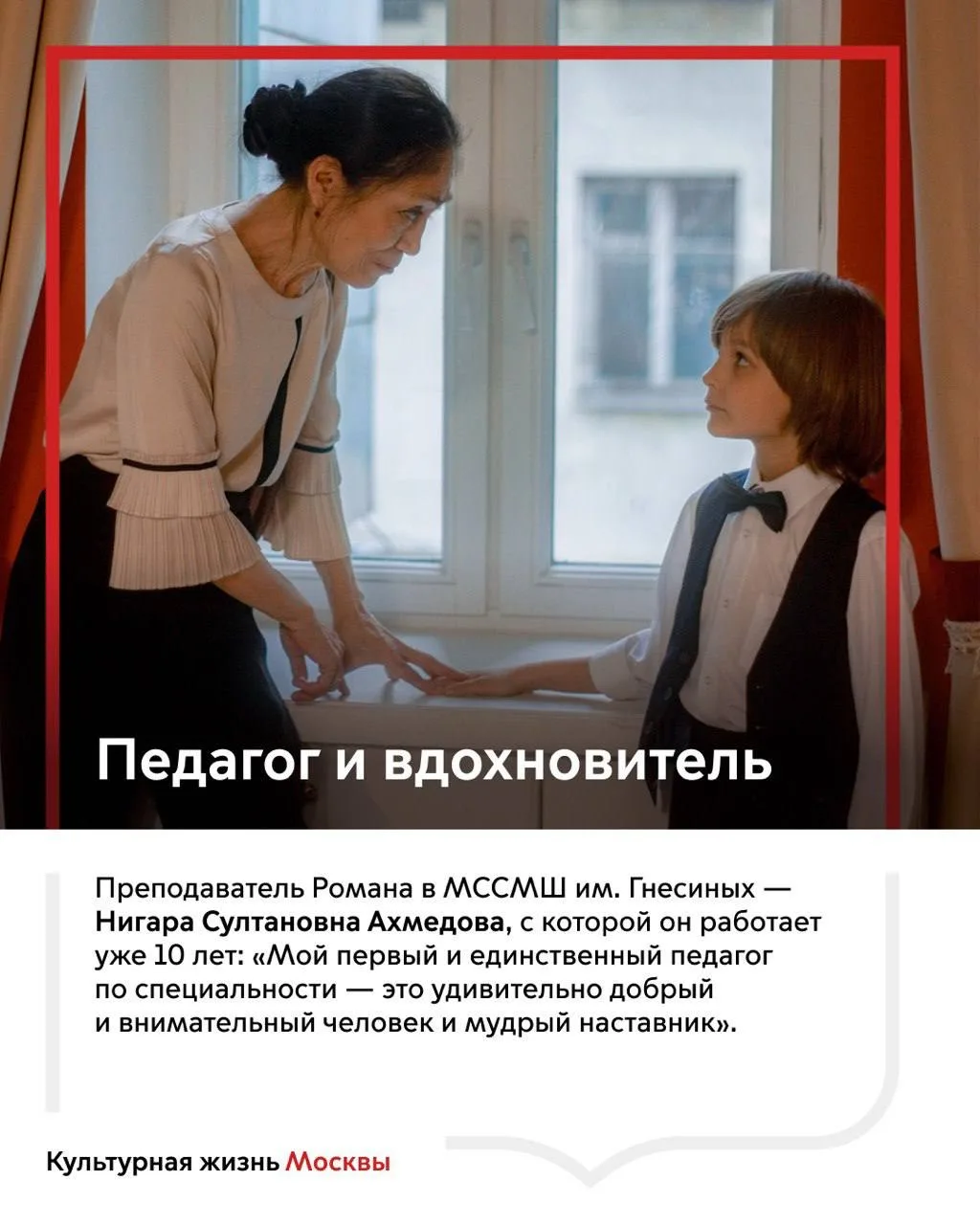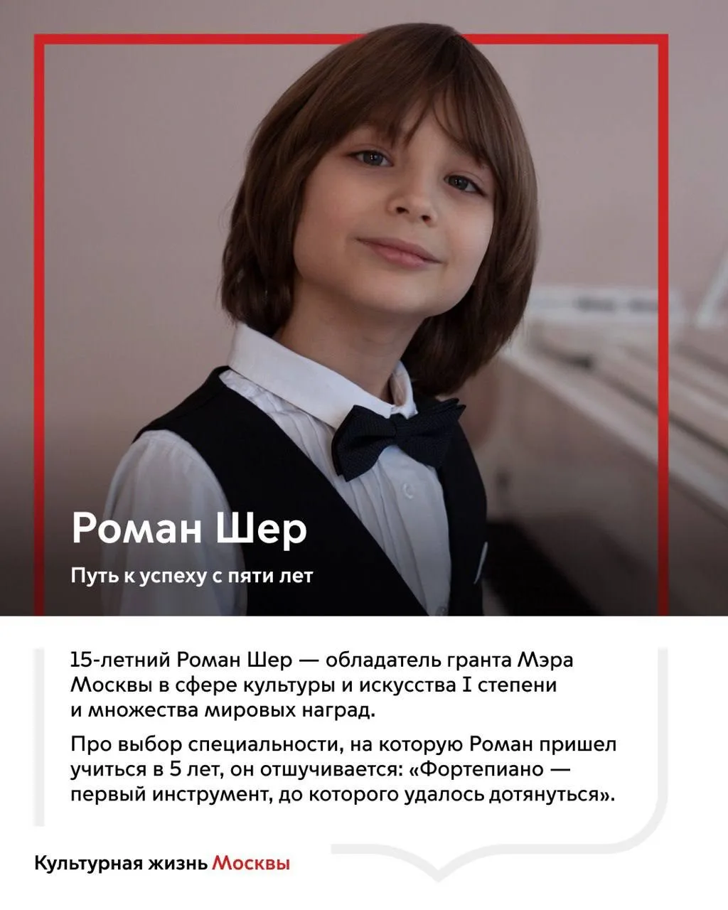 Среди молодых талантов — 15-летний Роман Шер и 10-летняя Олеся Турсунова, которые уже добились успехов на международных конкурсах и выступают на престижных сценах. Об историях их музыкального пути — читайте в карточках.