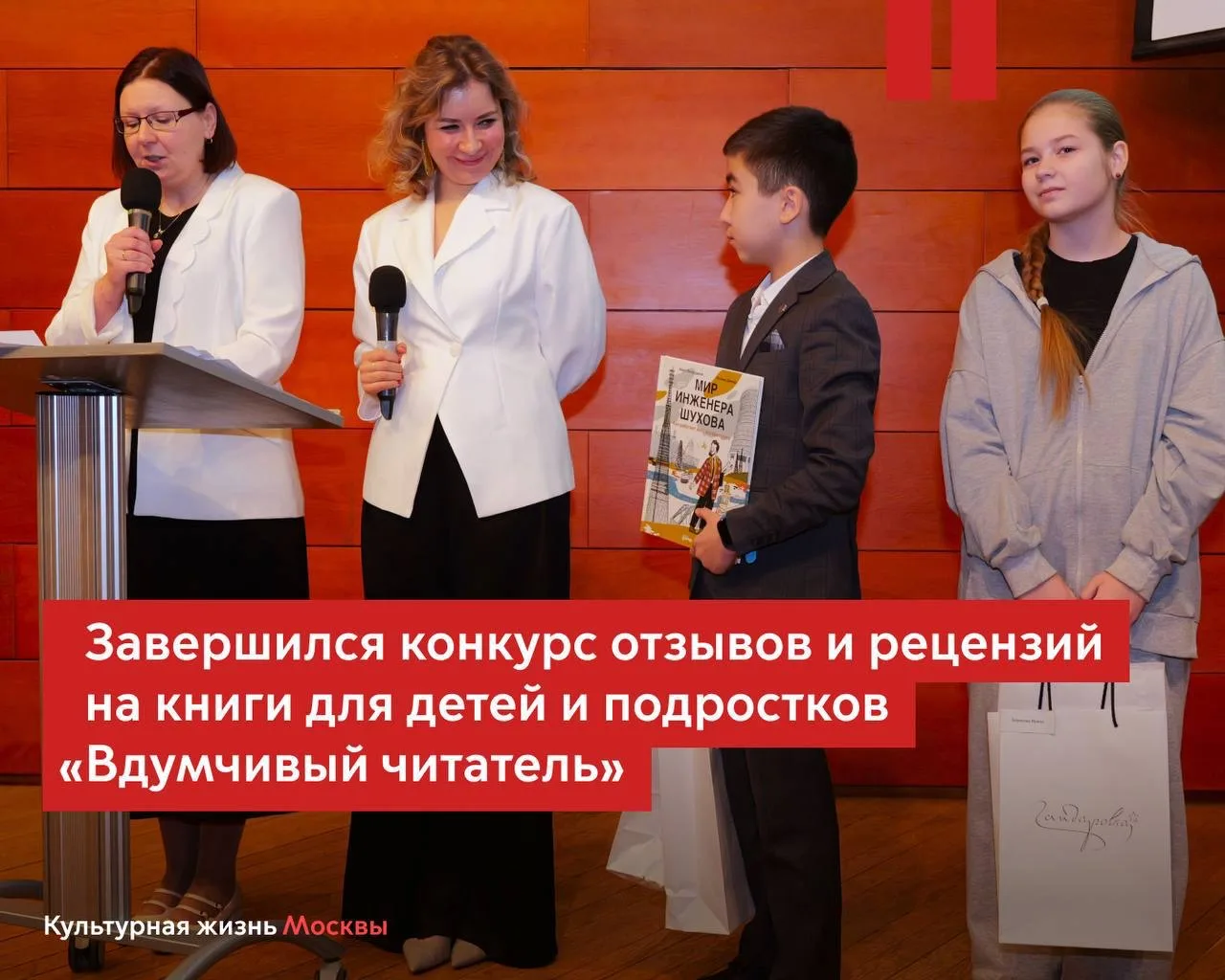 Завершился XVI Московский конкурс отзывов и рецензий «Вдумчивый читатель» — уже 16 лет он проводится при поддержке Департамента. Конкурсанты делились мнением о книгах современных авторов из ежегодных каталогов Центральной городской детской библиотеки имени А.П. Гайдара «100 лучших новых книг для детей и подростков».