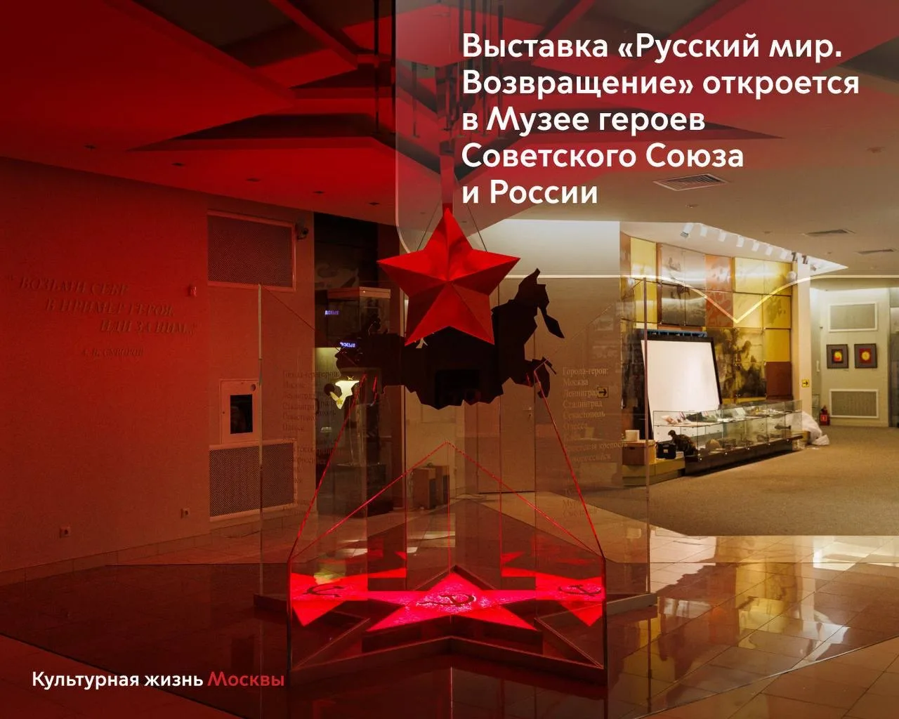 9 декабря, в День Героев Отечества, Государственный музей обороны Москвы представляет выставочный проект «Русский мир. Возвращение» на площадке обновленного Музея Героев Советского Союза и России.
