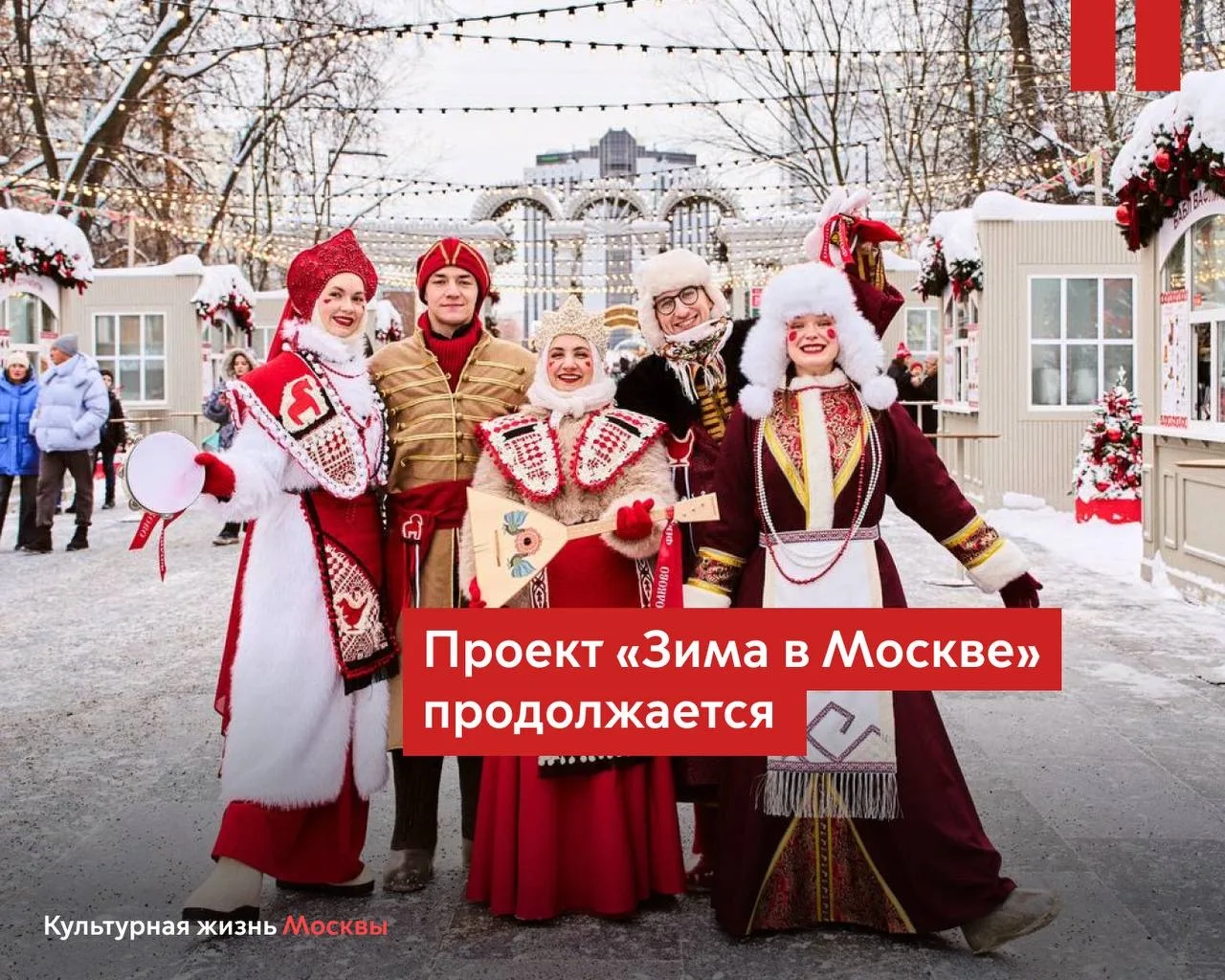 Он будет проходить до 1 марта в десятках локаций, среди которых Манежная и Болотная площади, кинопарк «Москино», Московский зоопарк, парк искусств «Музеон». В программе — сотни мероприятий: от кулинарных и творческих занятий до театрализованных постановок и концертов.