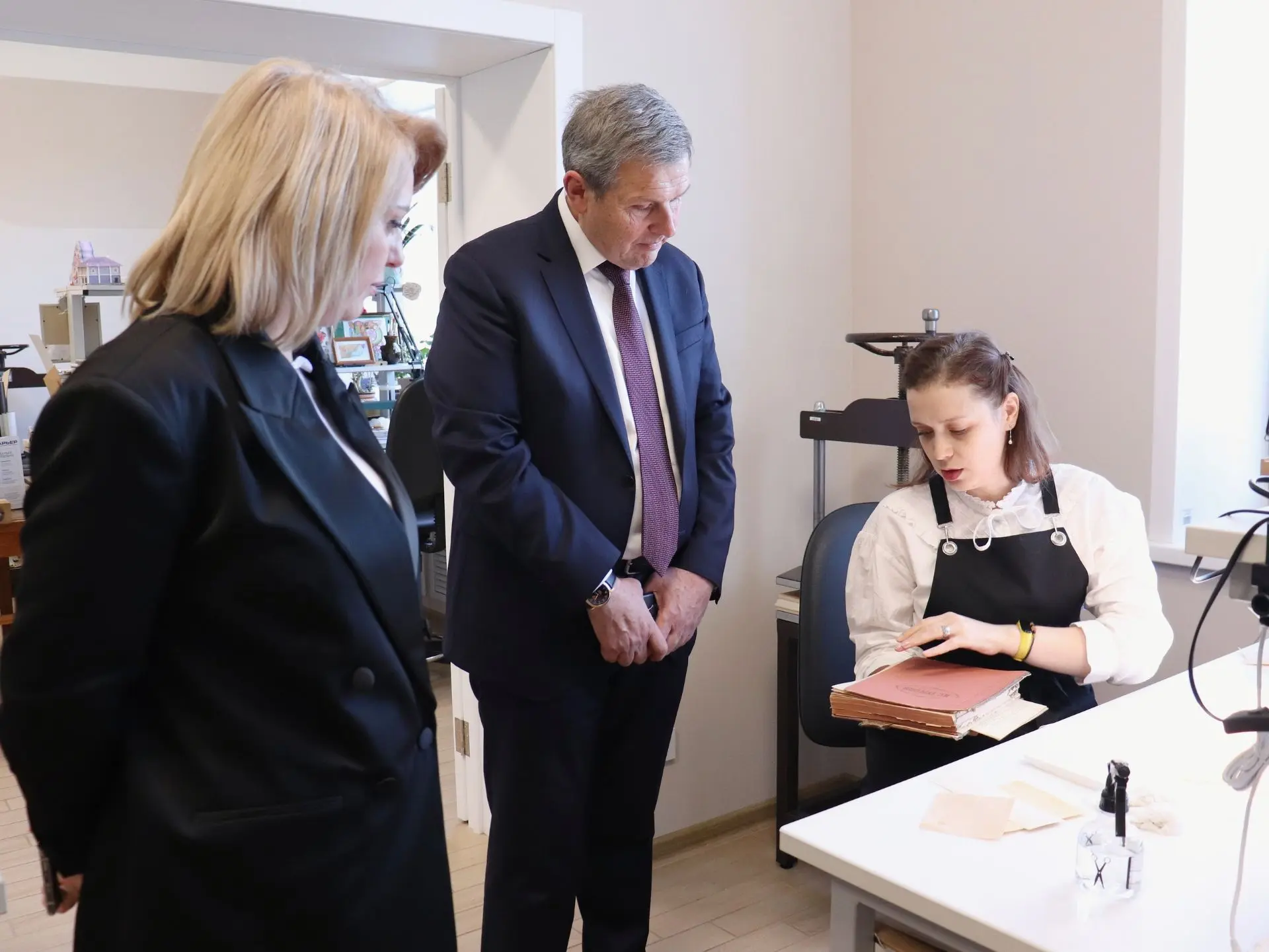 Вместе с главой воронежского ведомства Марией Мазур делегация Донецкой Народной Республики посетила Региональный центр консервации и реставрации Воронежской областной библиотеки им. И.С. Никитина.