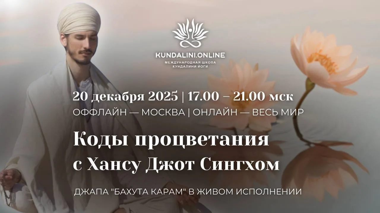 🙏 20 декабря музыкант с мировым именем, учитель Международного тренинга учителей Хансуджот Сингх приедет в Москву, чтобы провести Джапу 25 стиха!