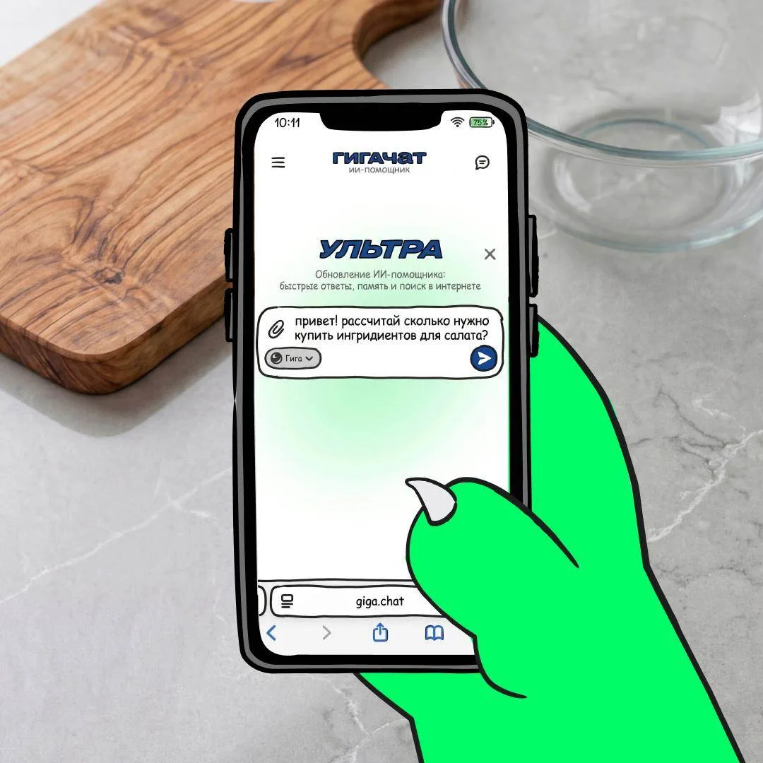Это я про ИИ-помощник ГигаЧат. Там ещё и обновление — теперь ГигаЧат отвечает мне быстрее и запоминает мои вкусы, предпочтения и всё, что для меня важно. Пойдём пробовать 💚