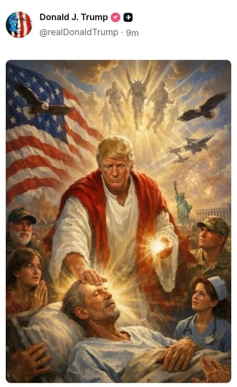 Трамп опубликовал изображение, на котором он представлен в образе Иисуса Христа, который воскрешает мёртвых.