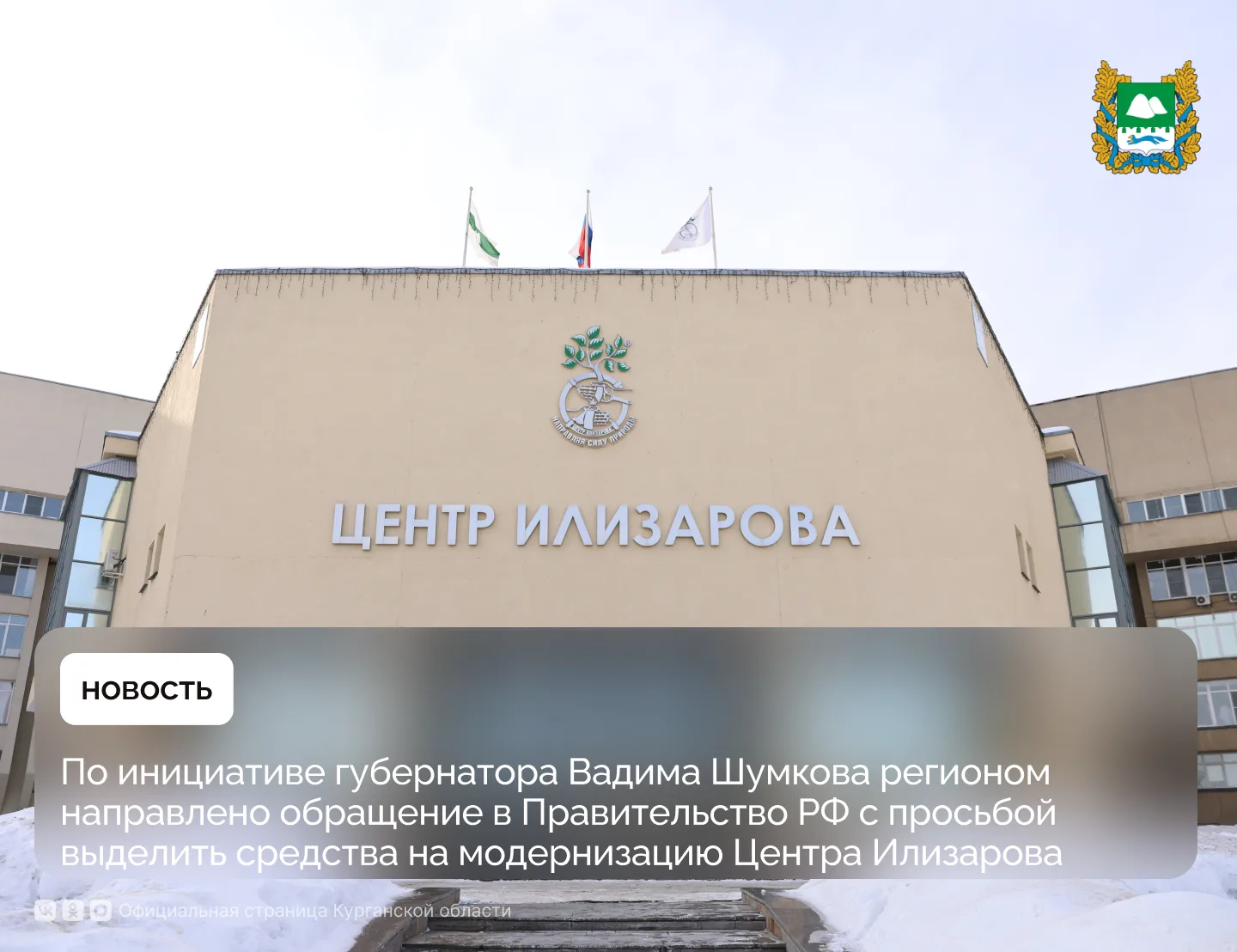По инициативе губернатора Вадима Шумкова правительством Курганской области направлено обращение в Правительство РФ с просьбой выделить средства на модернизацию Центра Илизарова.