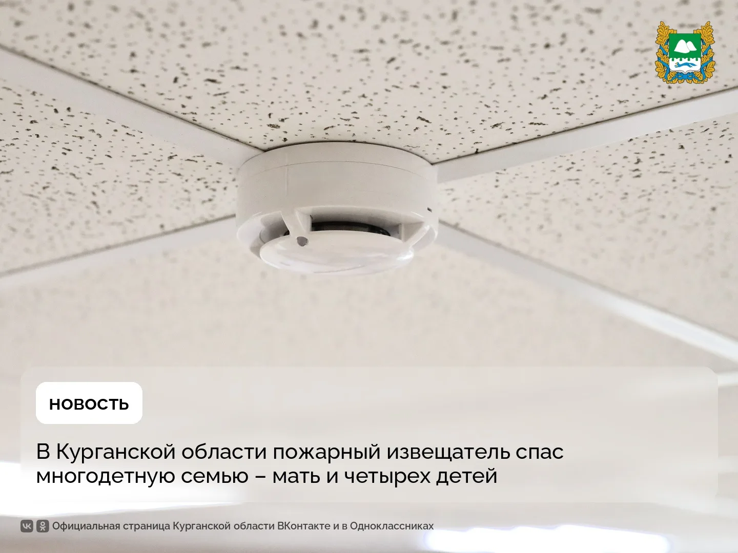 В Курганской области пожарный извещатель спас многодетную семью – мать и четырех детей.