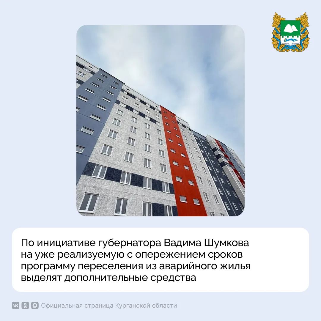 В Курганской области на уже реализуемую с опережением сроков программу по переселению из ветхого и аварийного жилья выделят дополнительное финансирование. Это позволит на несколько лет раньше переехать в новые комфортные квартиры ещё порядка 200 жителям. О принятом решении в своем канале в МАХ рассказал губернатор Вадим Шумков: