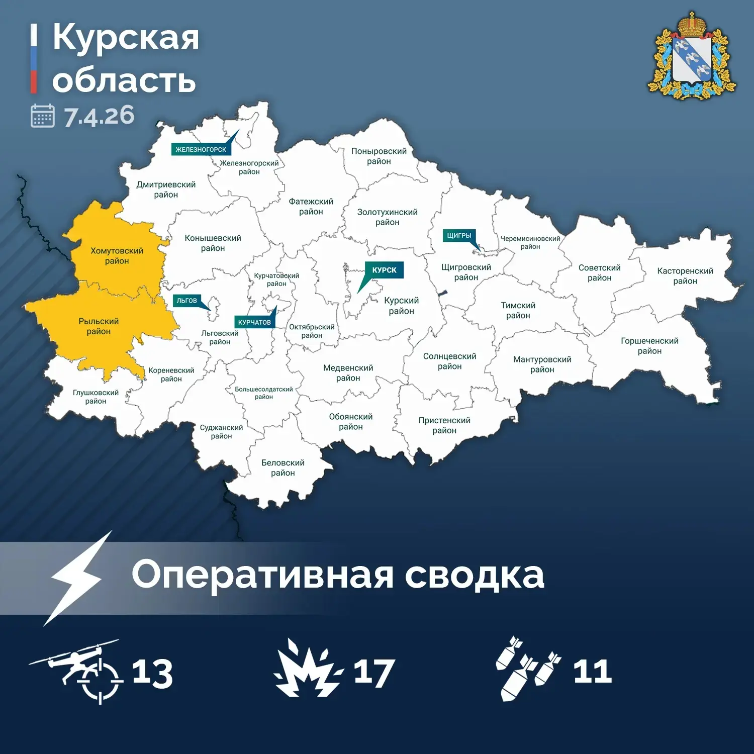 ⚡️ Александр Хинштейн опубликовал сводку об оперативной обстановке в Курской области за прошедшие сутки: