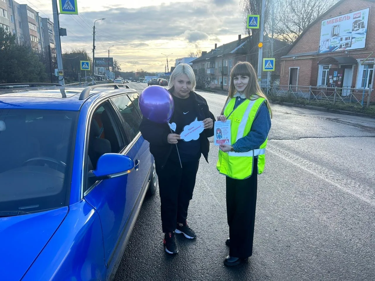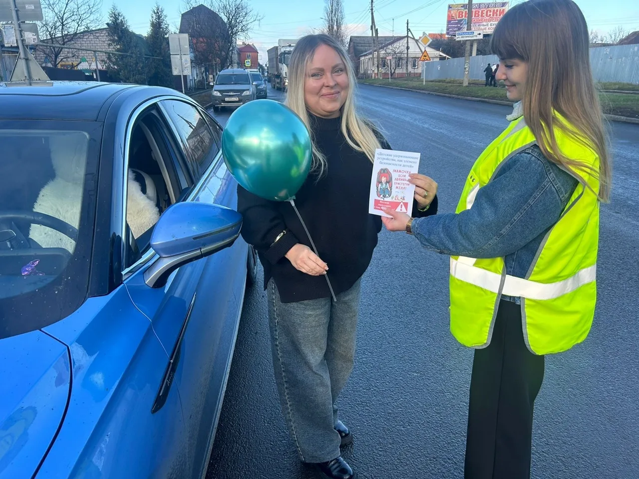 Инспекторы с тёплыми словами обращались к женщинам‑водителям. Каждая участница акции получала небольшой праздничный сюрприз: яркие воздушные шары, поднимающие настроение, и информационные буклеты с полезными рекомендациями по безопасной езде.