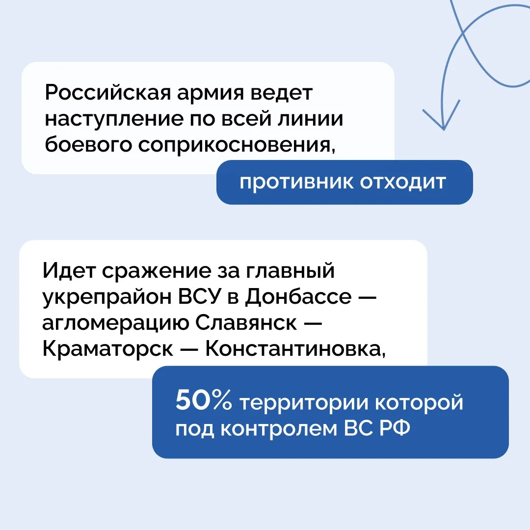 💪 Владимир Путин начал Прямую линию с оценки ситуации на фронте. По словам Верховного Главнокомандующего, российская армия владеет инициативой и наступает по всем направлениям. Подробности — в карточках.