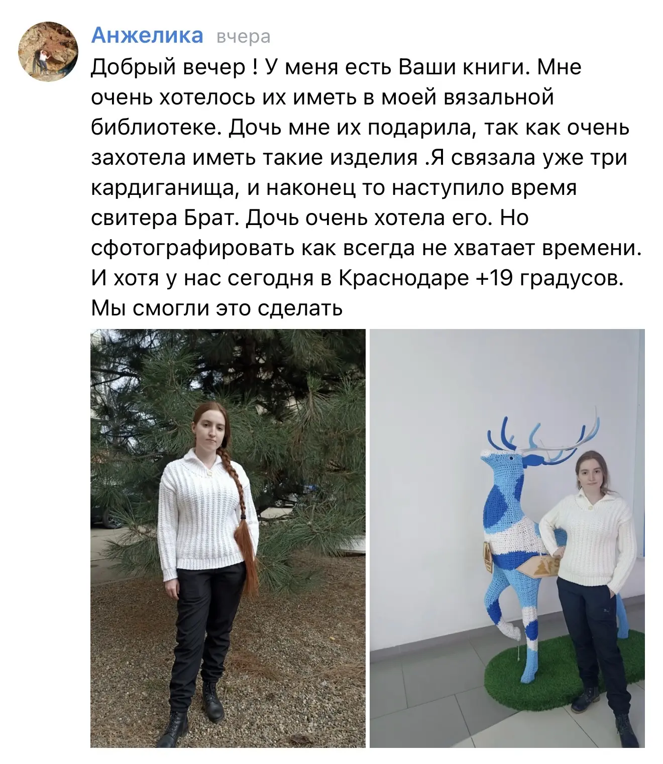 Тоже хочу белый свитер 😎 Хорошо Вам в Краснодаре 😁 +19 ☀️У нас в Зеленограде -17 ❄️ сегодня!