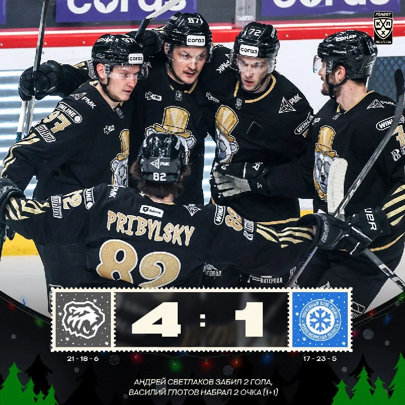 🏒 Хоккейный клуб «Трактор» обыграл новосибирскую «Сибирь» в чемпионате КХЛ. «Черно-белые» дома одержали уверенную победу со счетом 4:1.