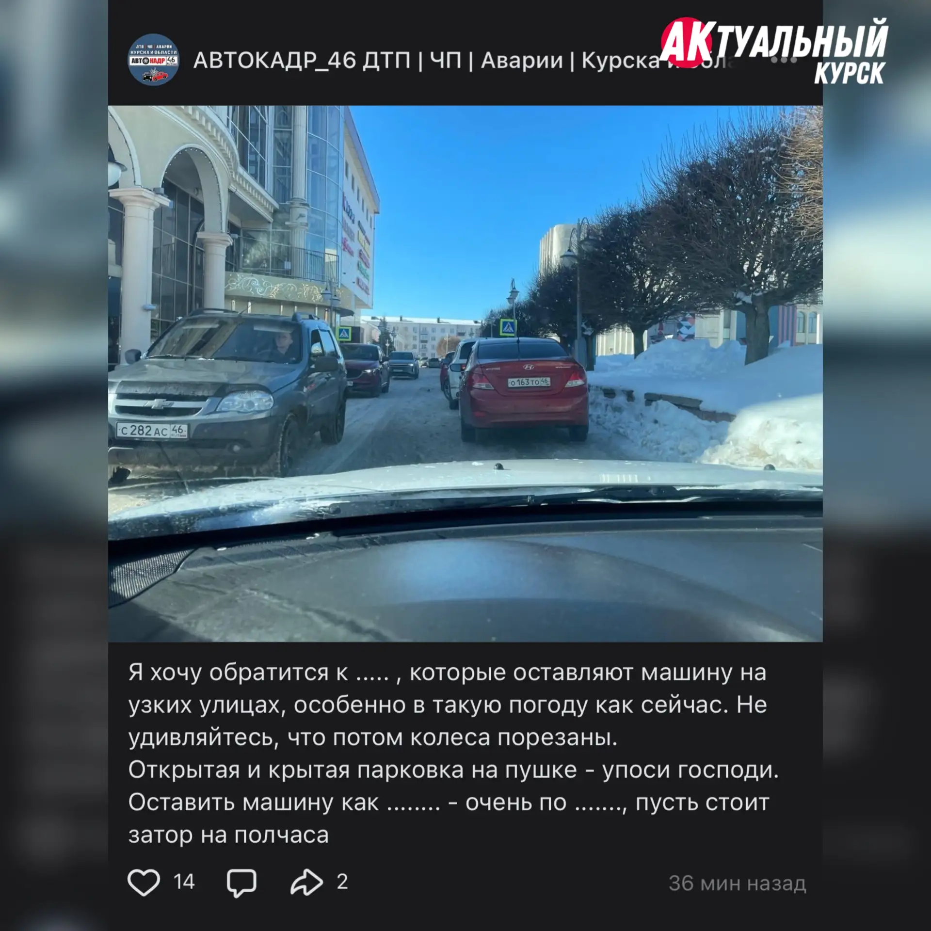🫢 Куряне в соцсетях угрожают порезать колёса тем, кто «в такую погоду паркуется на узких улицах».