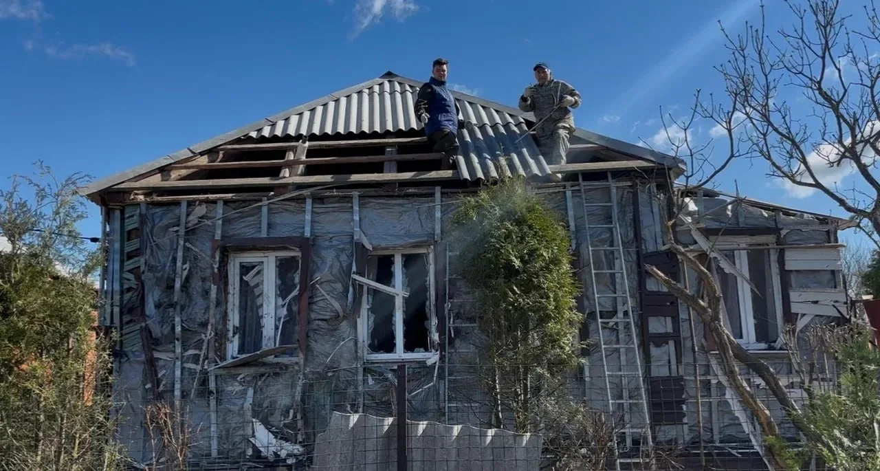 Сильно пострадали два жилых дома: выбиты окна, посечен фасад, повреждена кровля. В настоящий момент жителям помогают проводить восстановительные работы волонтеры Курского рубежа.