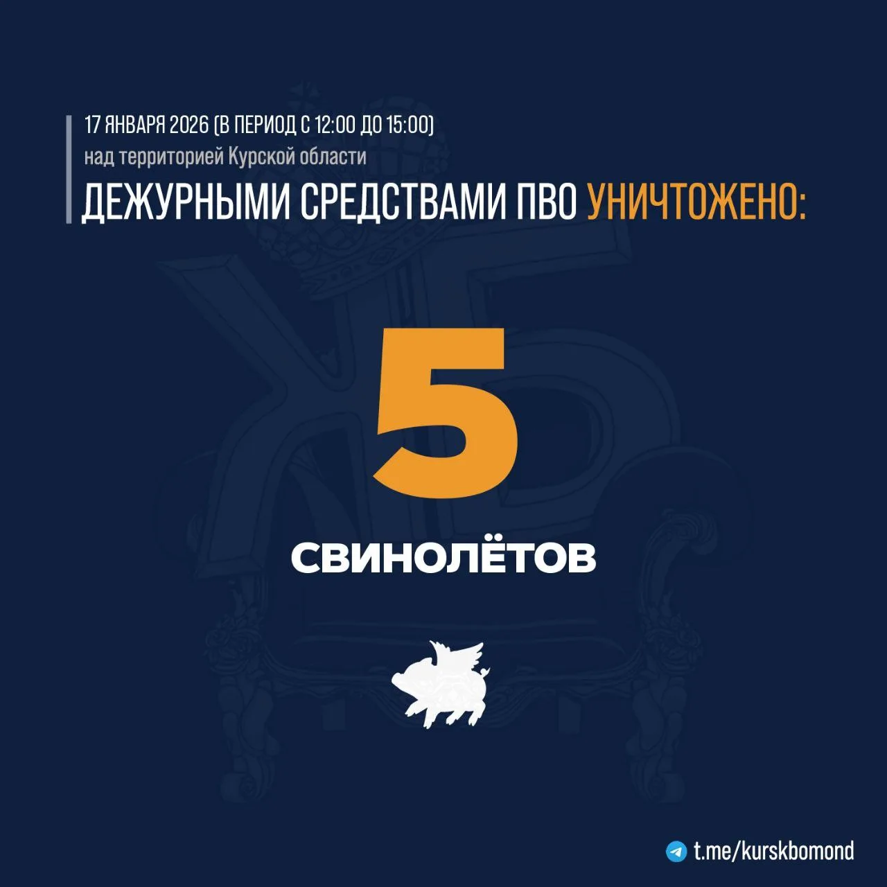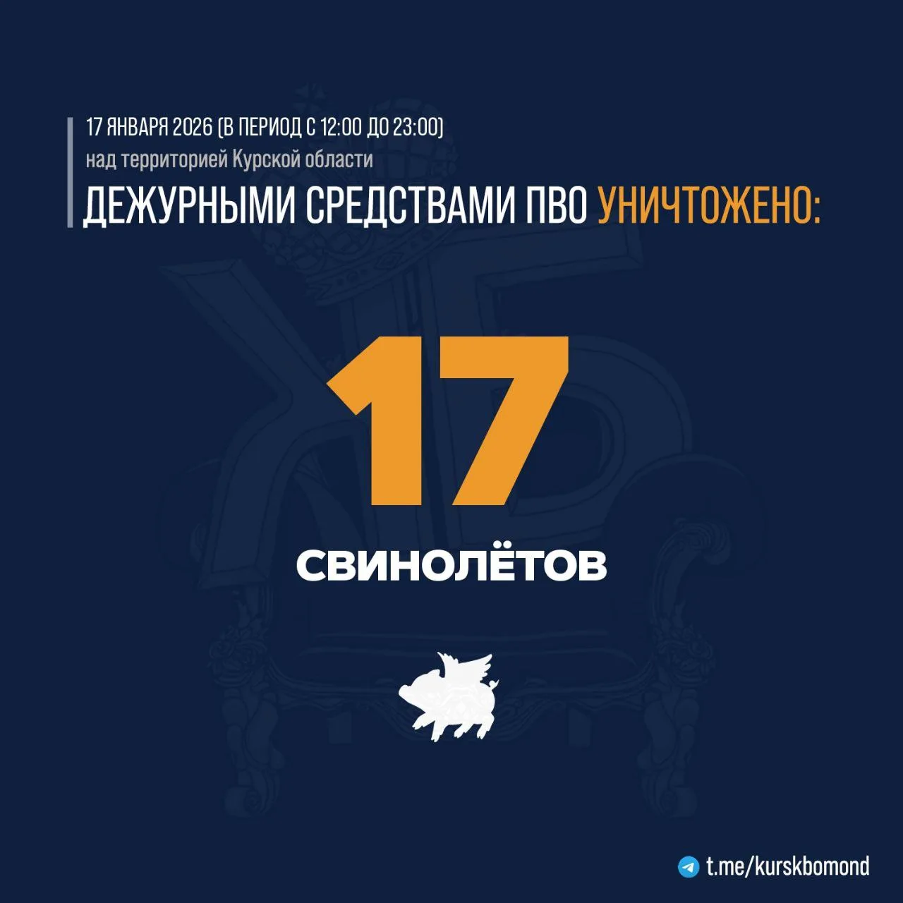 ⚡️17 украинских БПЛА самолётного типа было уничтожено в небе Курской области в период с 12:00 до 23:00.