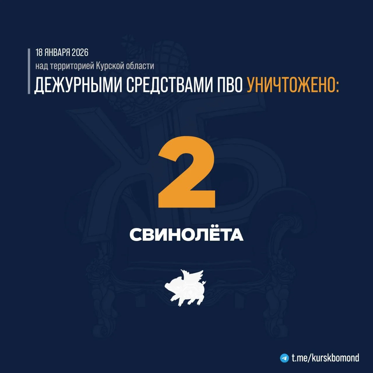 ⚡️ 2 украинских БПЛА самолётного типа было уничтожено в течение прошедшей ночи дежурными средствами ПВО над территорией Курской области.