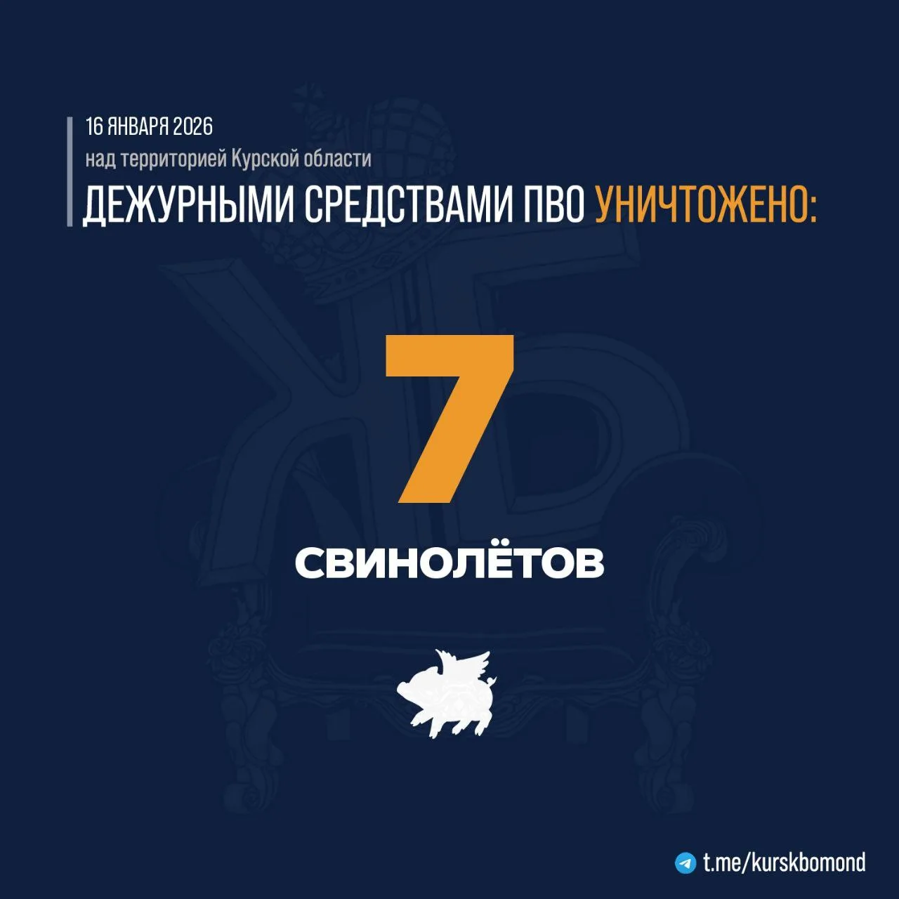 ⚡️ 7 украинских БПЛА самолётного типа было уничтожено в течение прошедшей ночи дежурными средствами ПВО над территорией Курской области.
