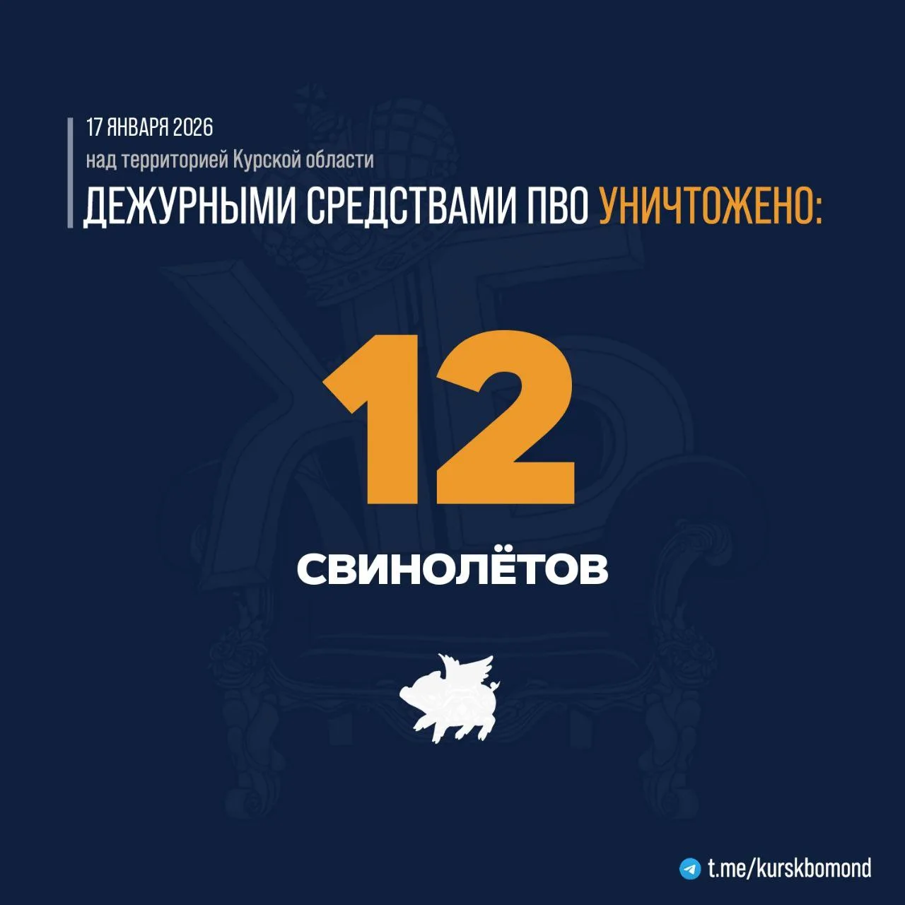 ⚡️ 12 украинских БПЛА самолётного типа было уничтожено в течение прошедшей ночи дежурными средствами ПВО над территорией Курской области.