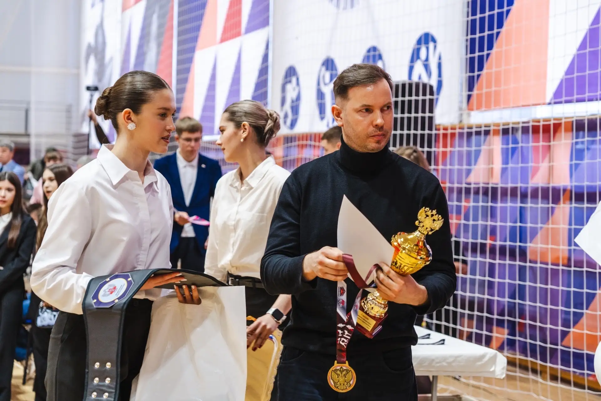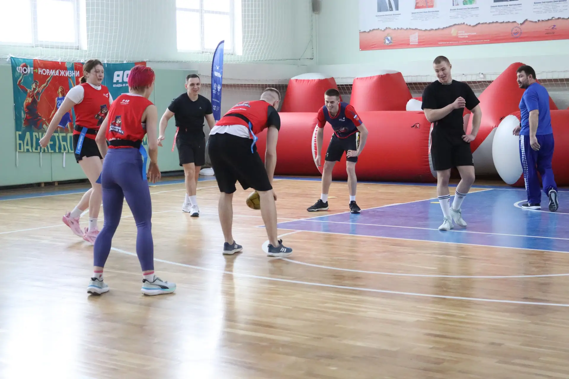 С самого утра спортивный зал университета наполнился энергией. Активная пятница началась с бодрящей регби-зарядки, которую провел мастер спорта и член сборной России по рэгби-7 Сергей Толмачёв.
