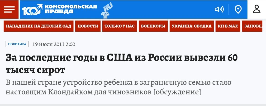 За последние годы в США из России вывезли 60 тысяч сирот