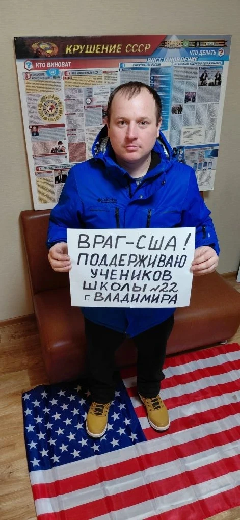 Директора школы во Владимире, где растоптали американский флаг и пригласили Героя России Апти Алаудинова - уволили, об этом рассказал Председатель АНО "РВСН" Павел Григорьев: