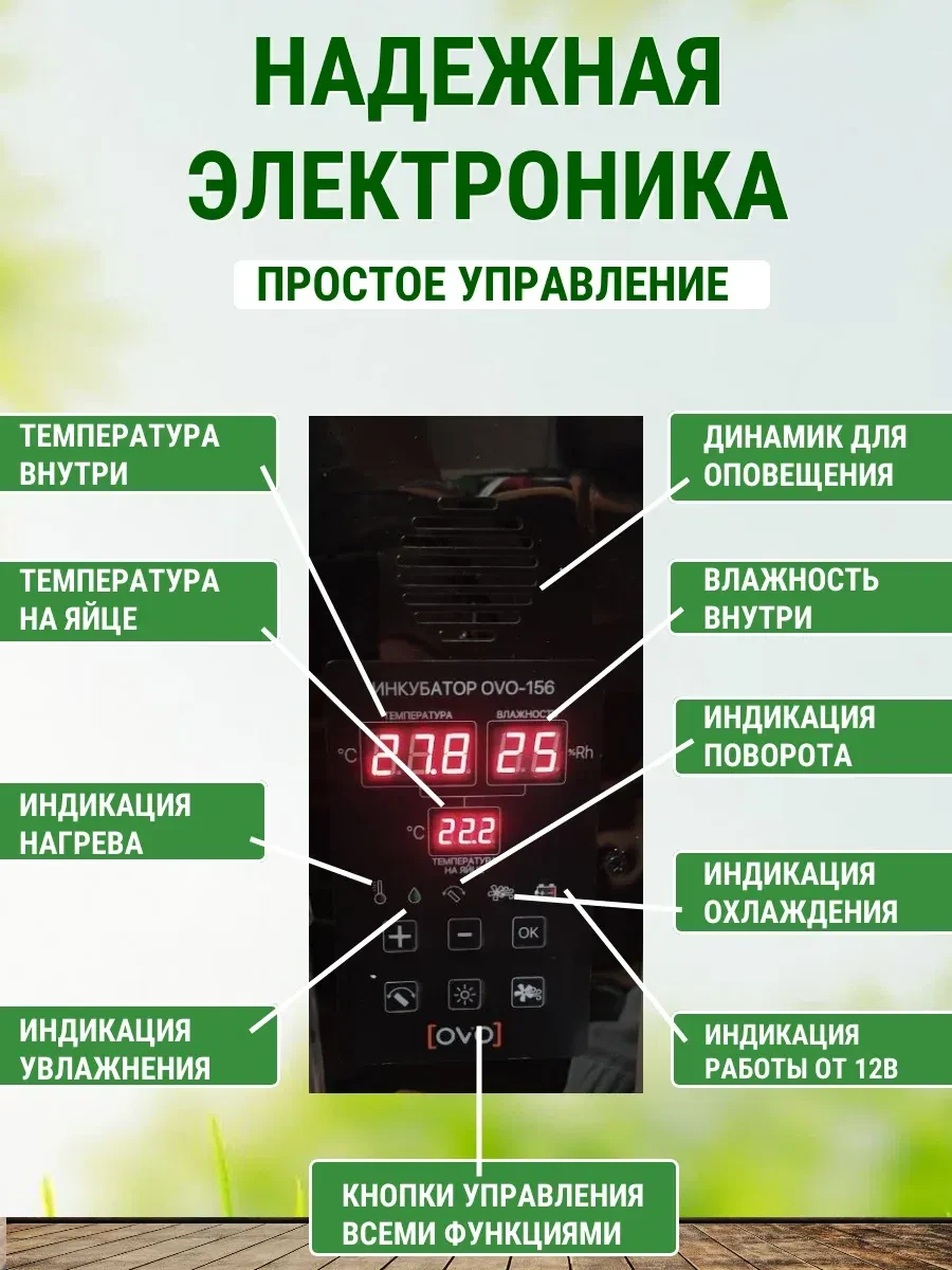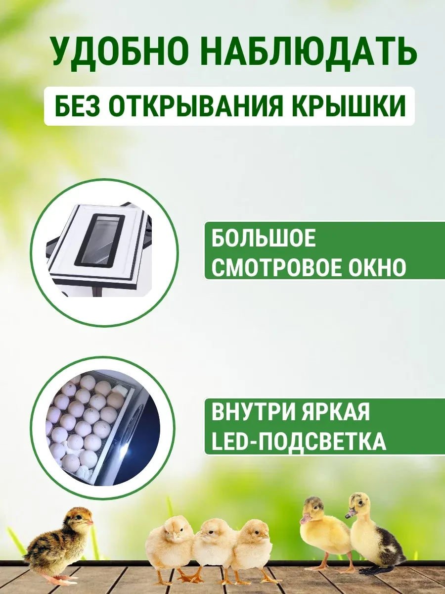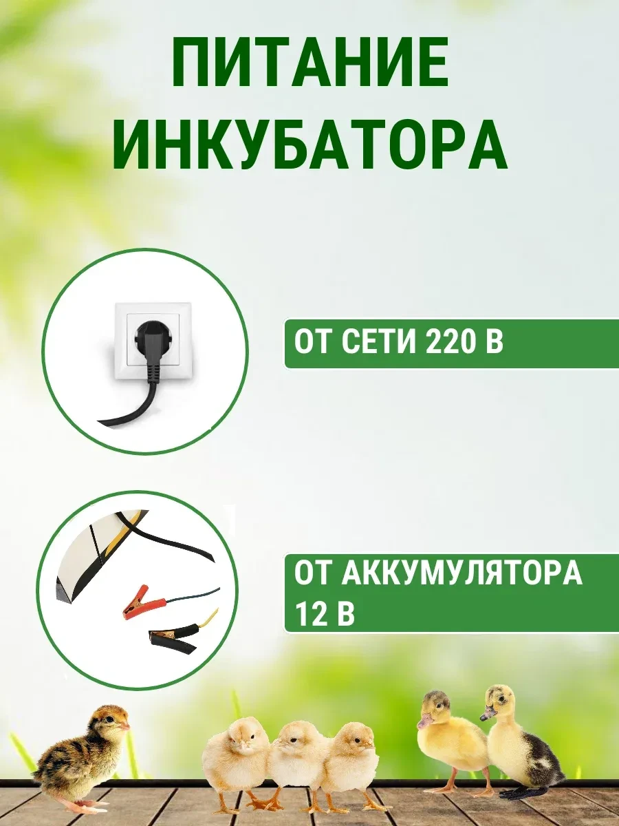Прочный утеплённый корпус, LED‑подсветка и цифровое табло делают работу с инкубатором максимально удобной. Гарантия — 12 месяцев.