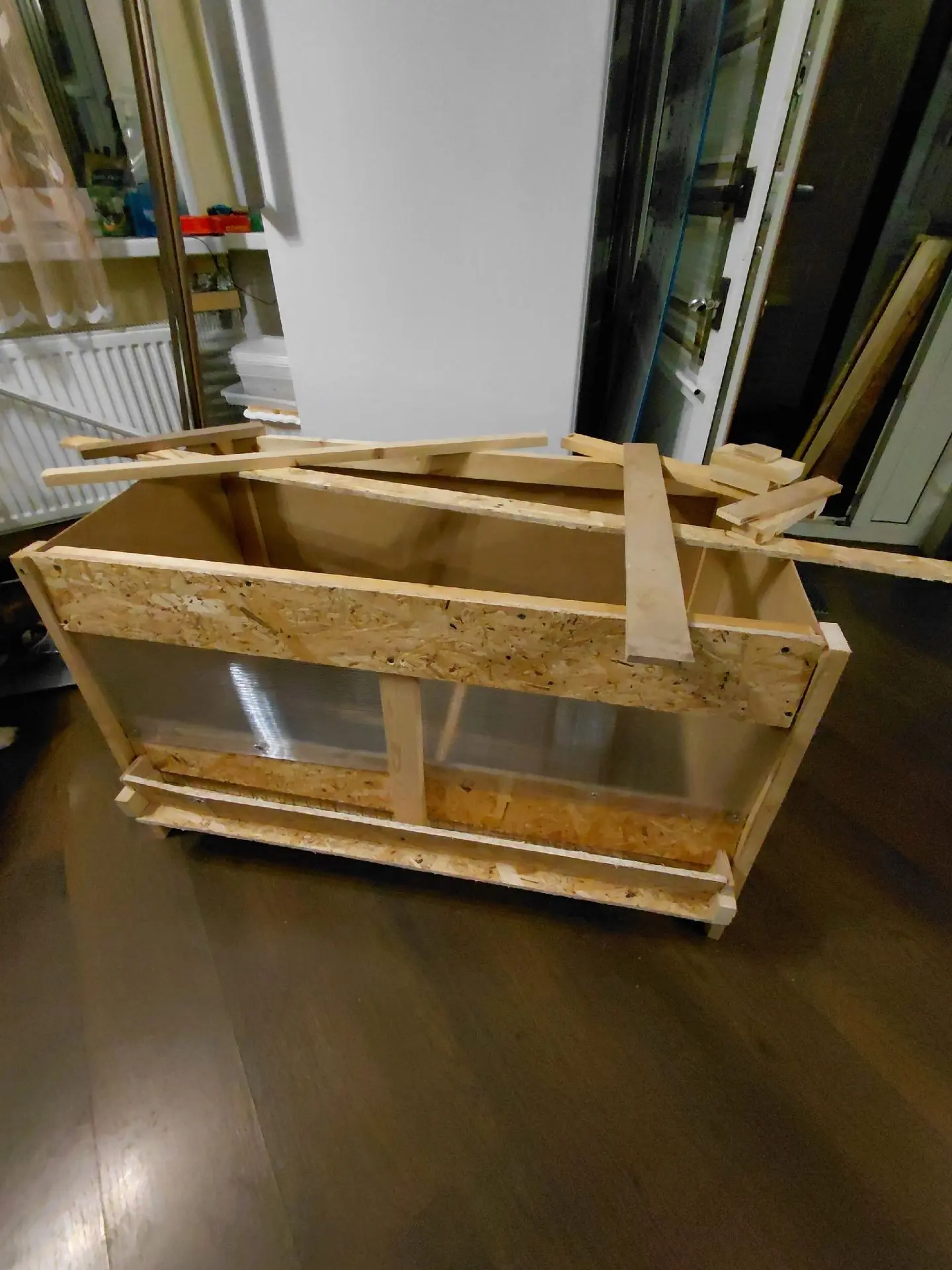 👋Делаю брудер для цыплят. Особо не заморачивалась с материалом, собрала всё что было. Как говорится-я его слепила, из всего что было. Завтра прикреплю электрику, диммер, патрон с красной лампой, и крышу...вот только на крышу есть карбонат, немного старых панелей. Если карбонат, то слишком светло им будет. Может быть расклёв. Значит как то затемнять. ❤️ От подписчиков