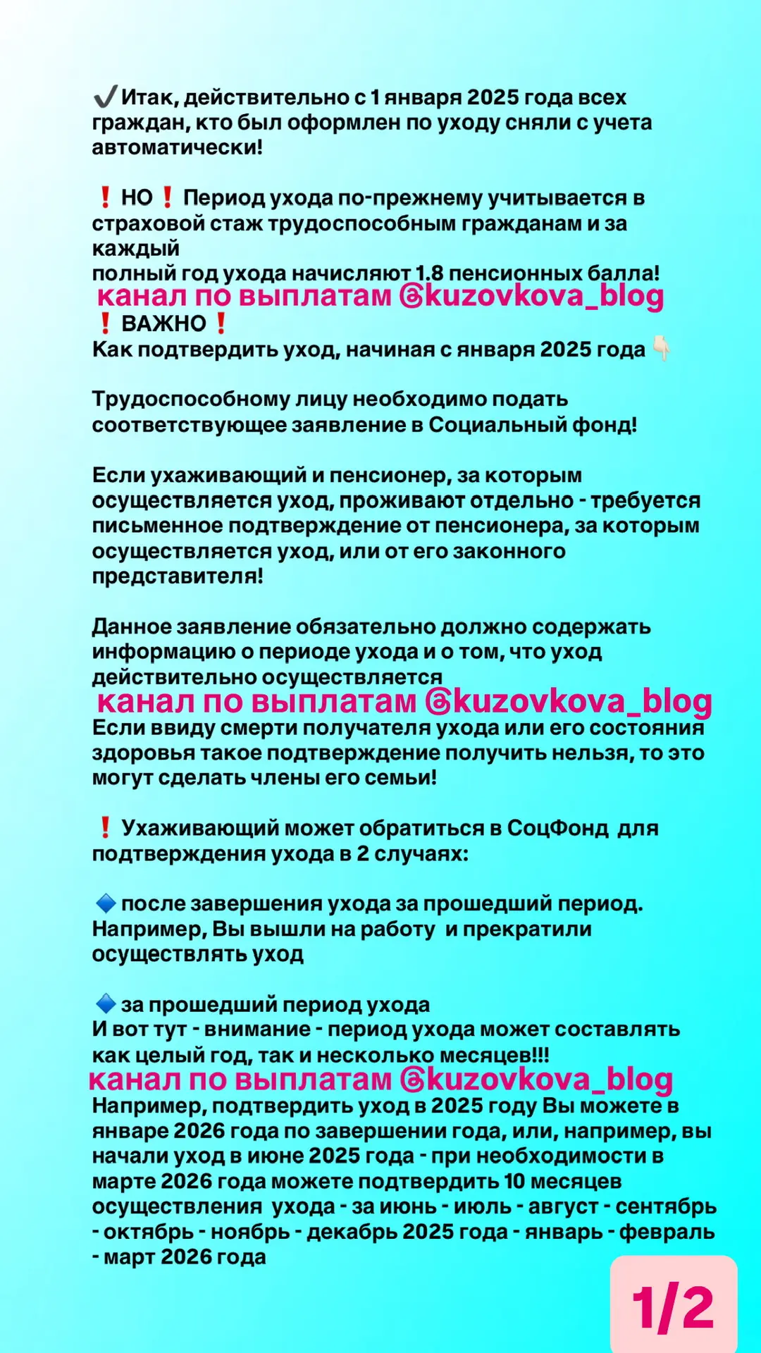 ‼️Про уход за пожилыми и людьми с инвалидностью и уважительную причину для единого пособия